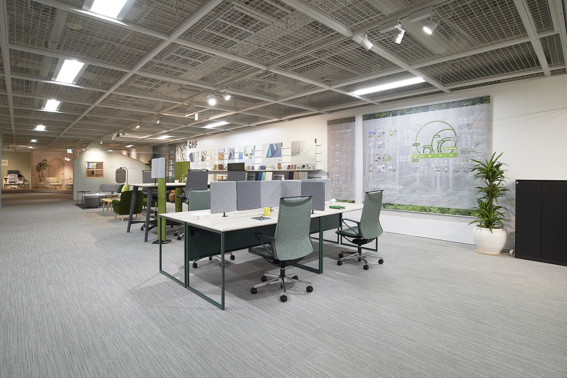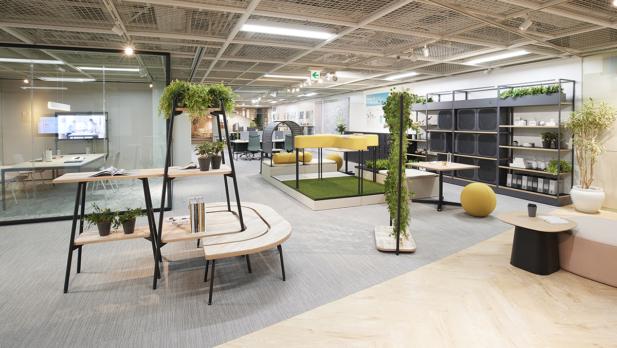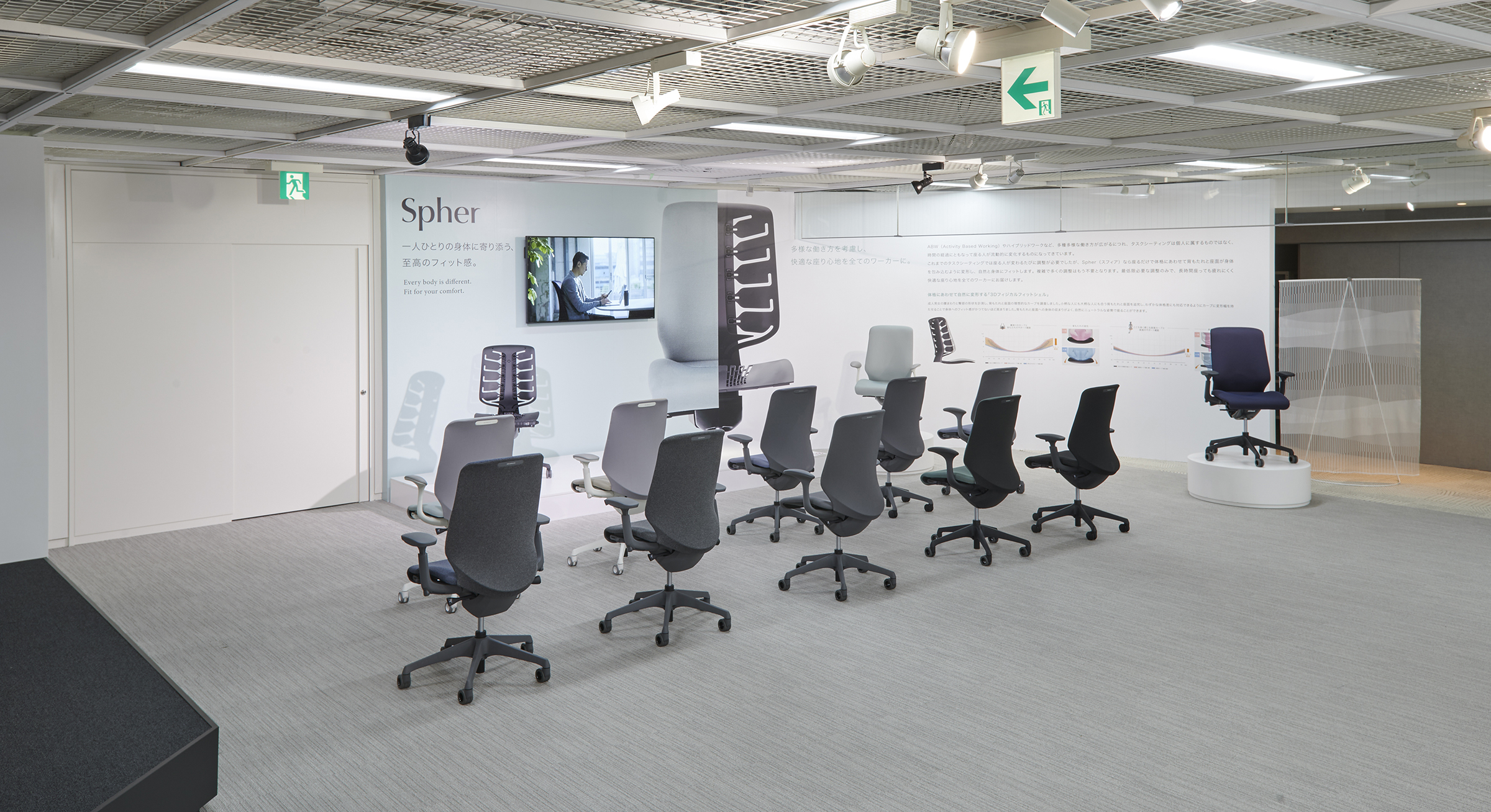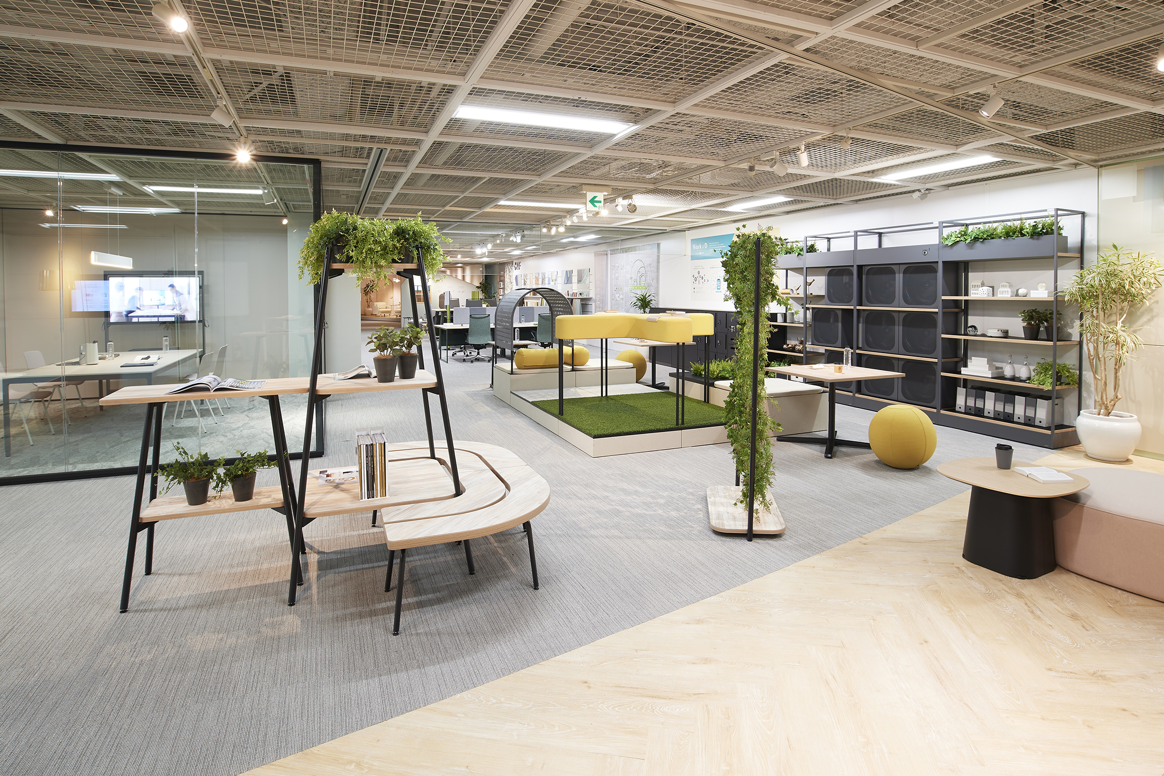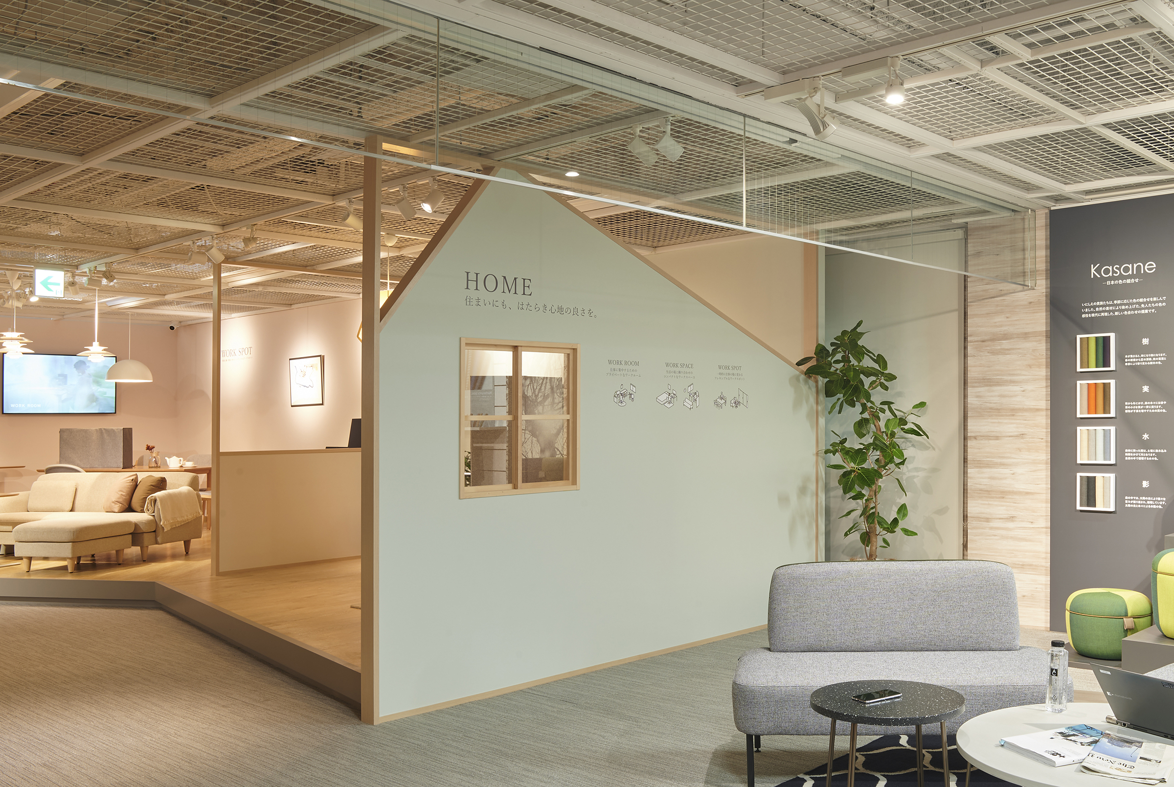 居⼼地が良く、機能的と感じられる働く場をつくるための、さまざまな在宅ワーク用家具を展示しています。