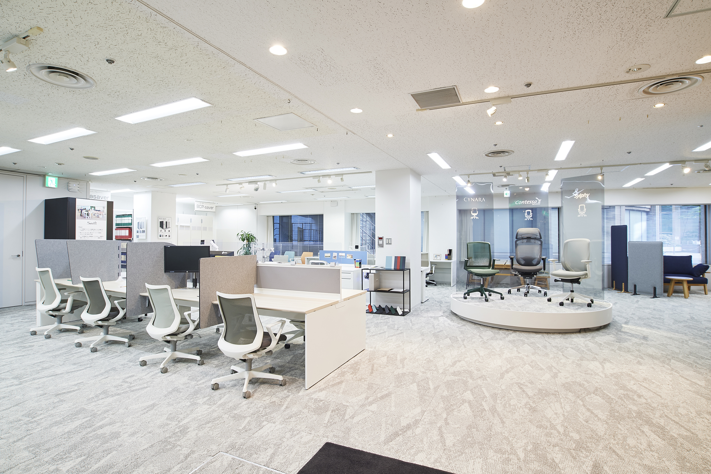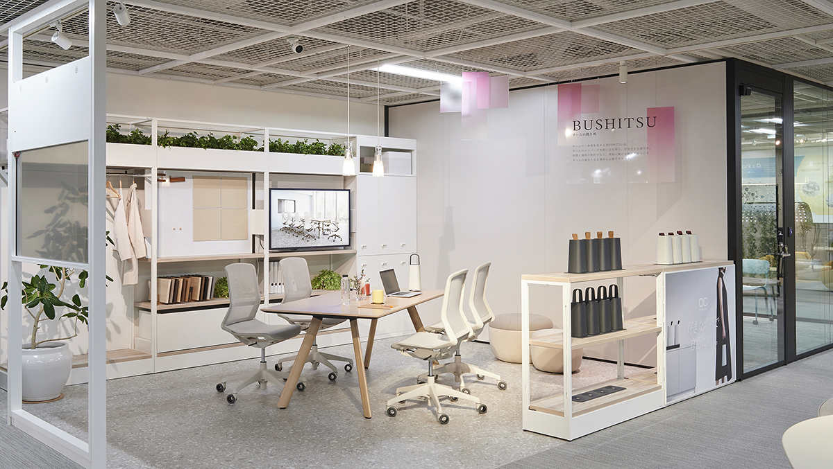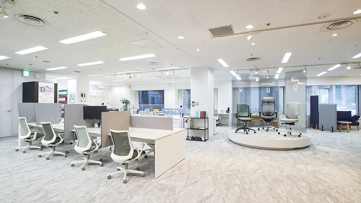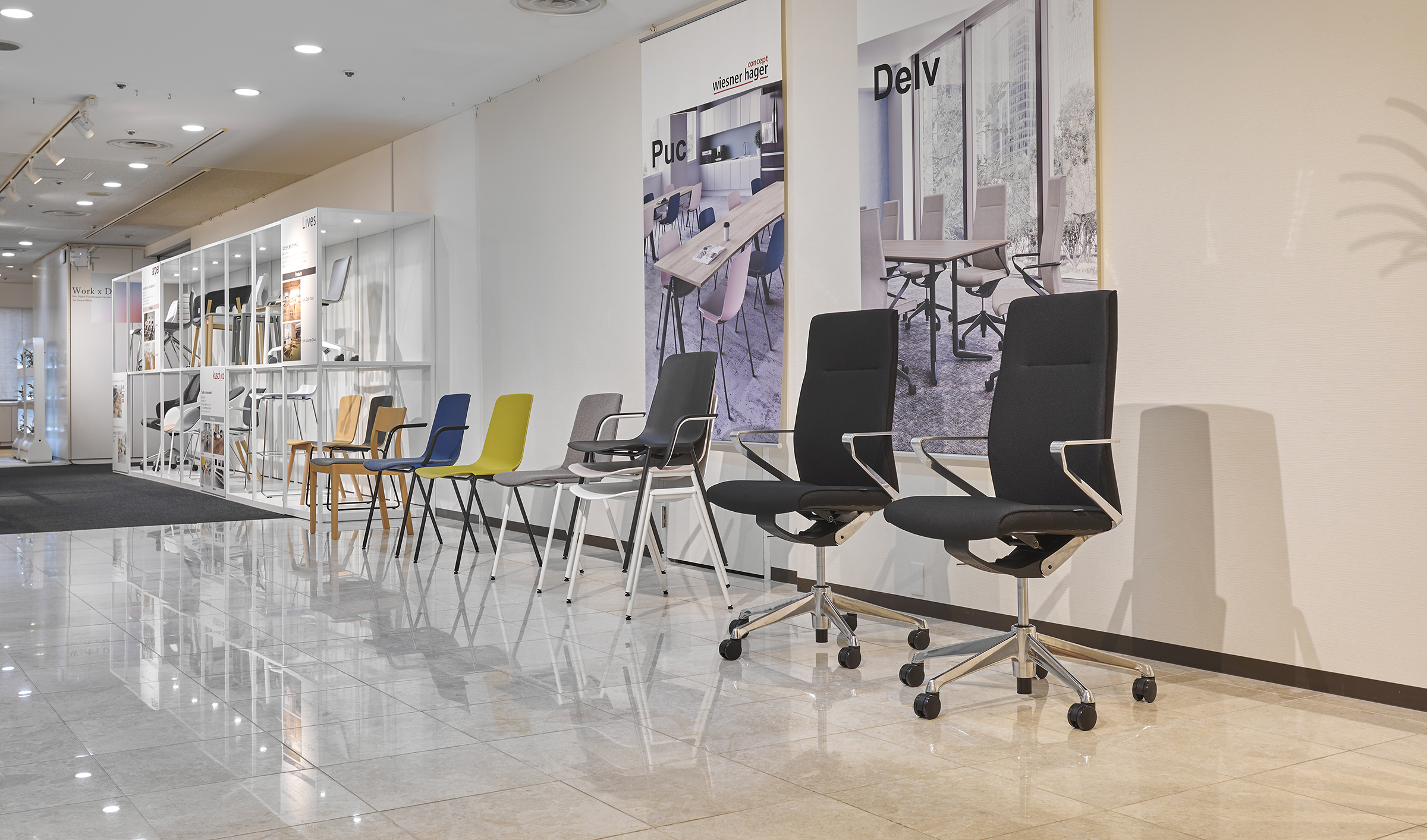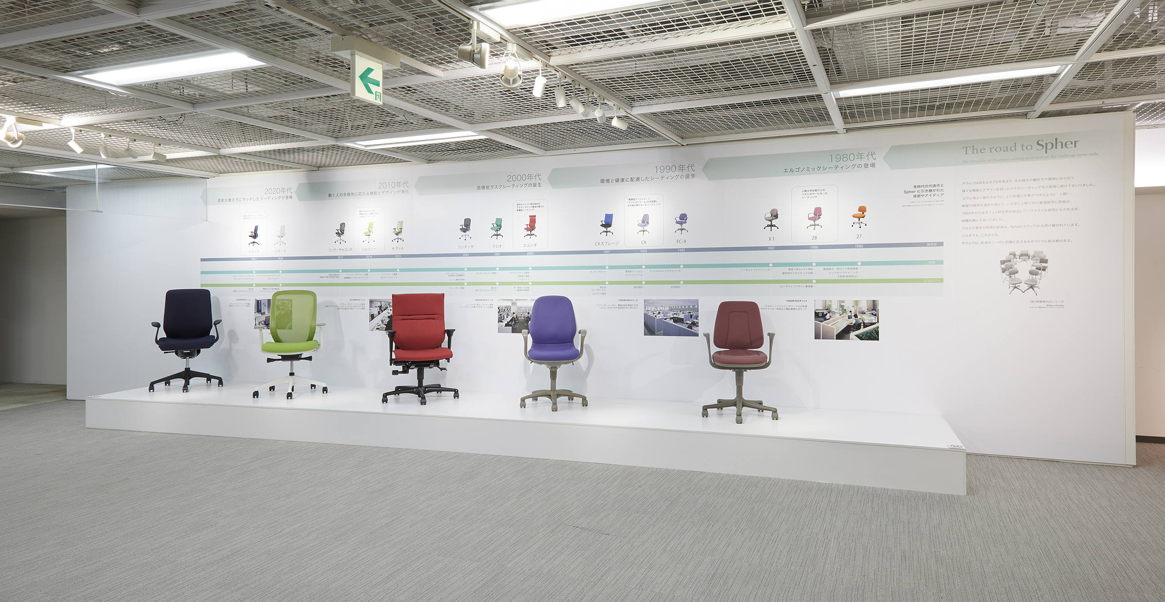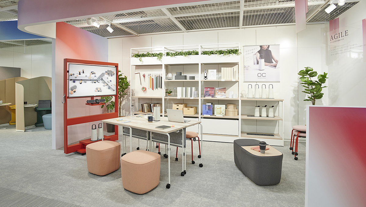 居⼼地が良く、機能的と感じられる働く場をつくるための、さまざまな在宅ワーク用家具を展示しています。
