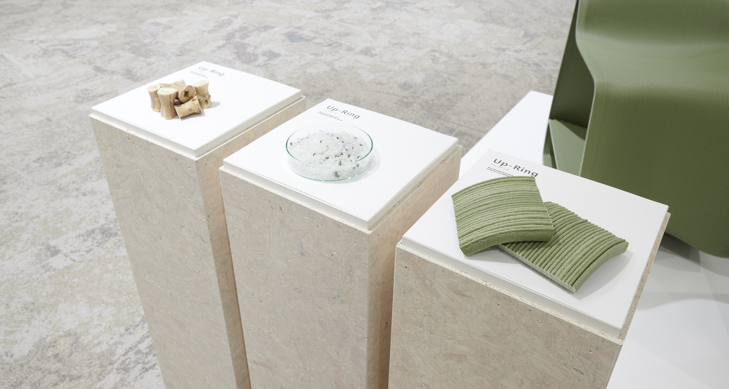 Up-Ringは、脱炭素社会の実現に向けて取り組んでいる、地球にやさしい製品シリーズです。枯渇燃料ではないバイオポリエチレンを原料とし、製造時の消費電力が少ない3Dプリンタ-にて生産しています。