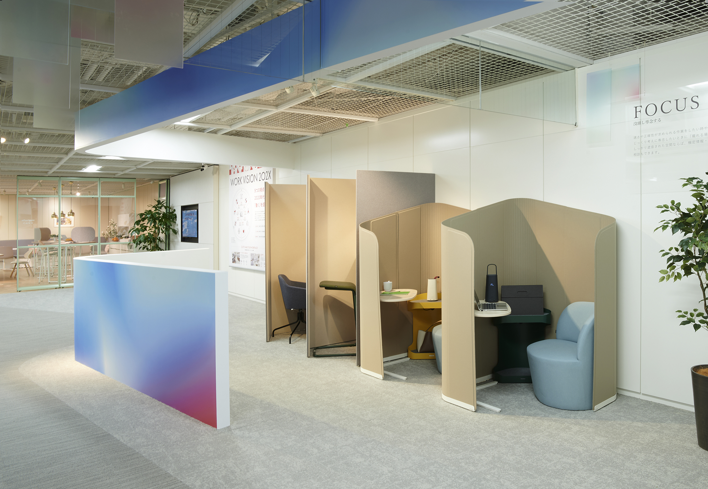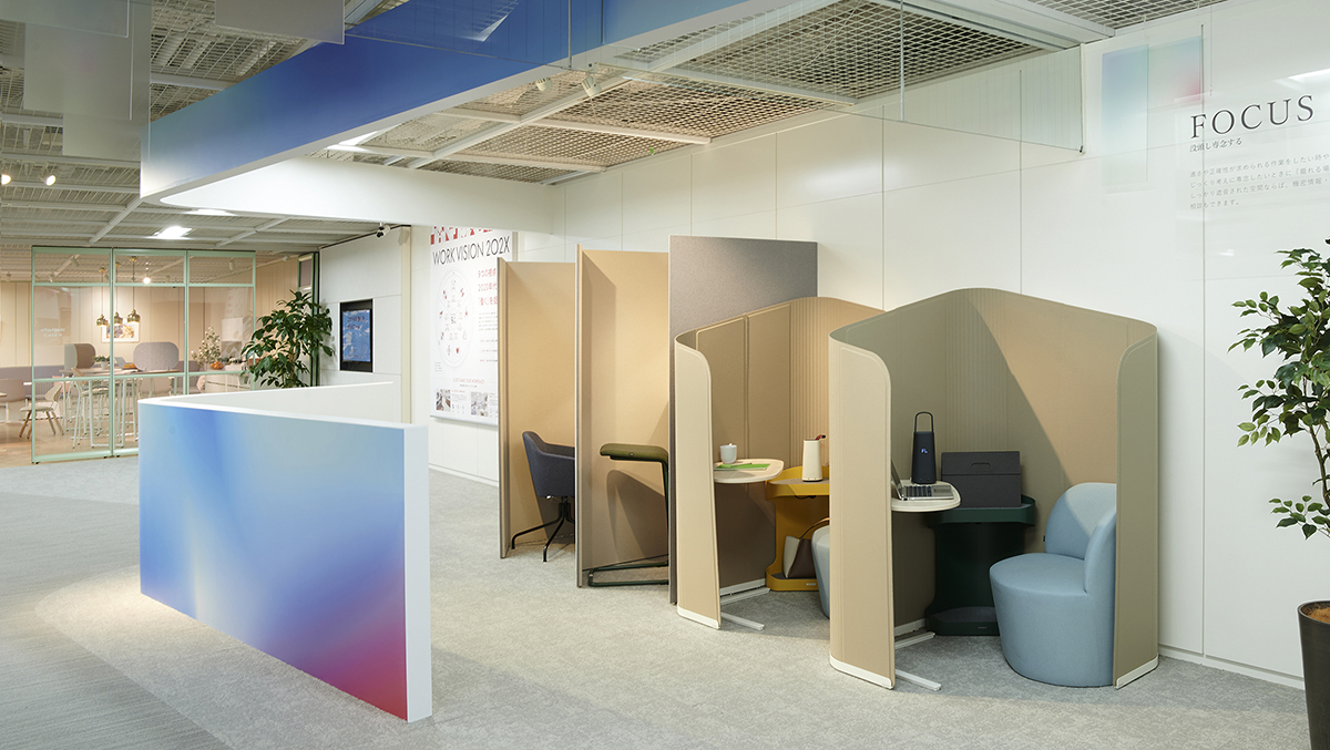 集中作業に最適なワークブースを用途や目的に合わせてお選びください。ニーズに合わせて的確に配置することで、オープンとクローズのバランスが取れた、はたらき心地の良いオフィスづくりを可能にします。
