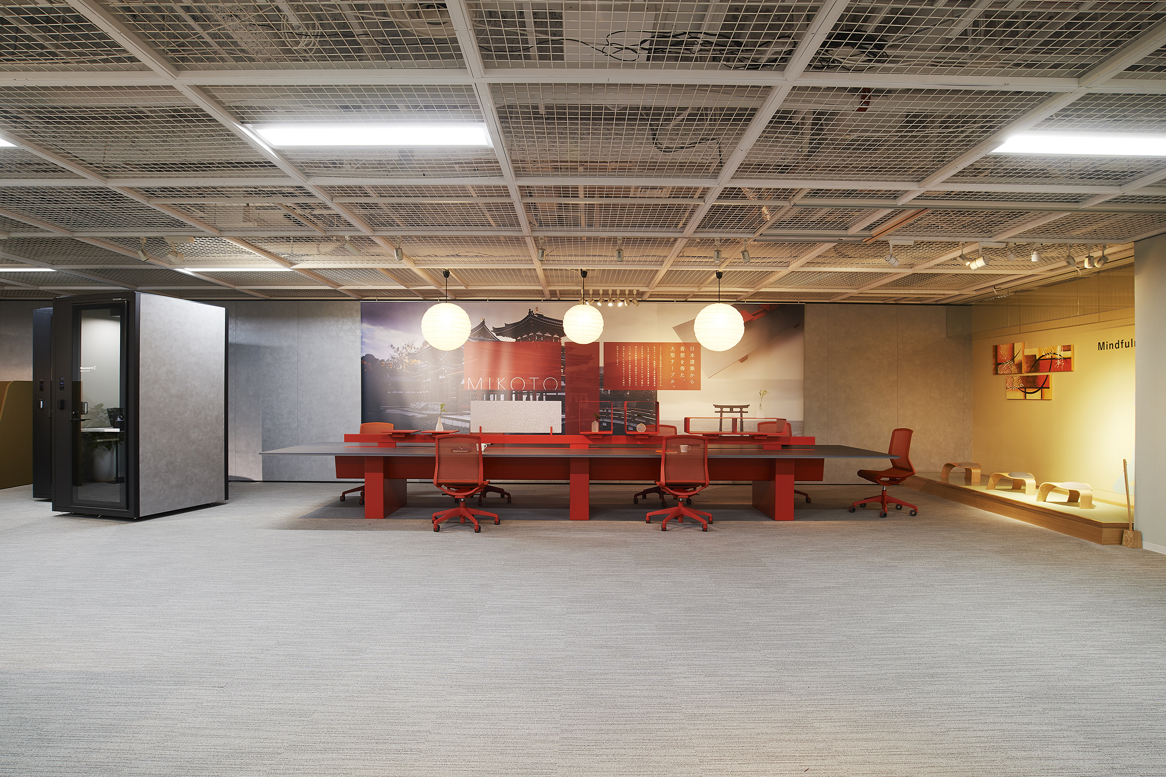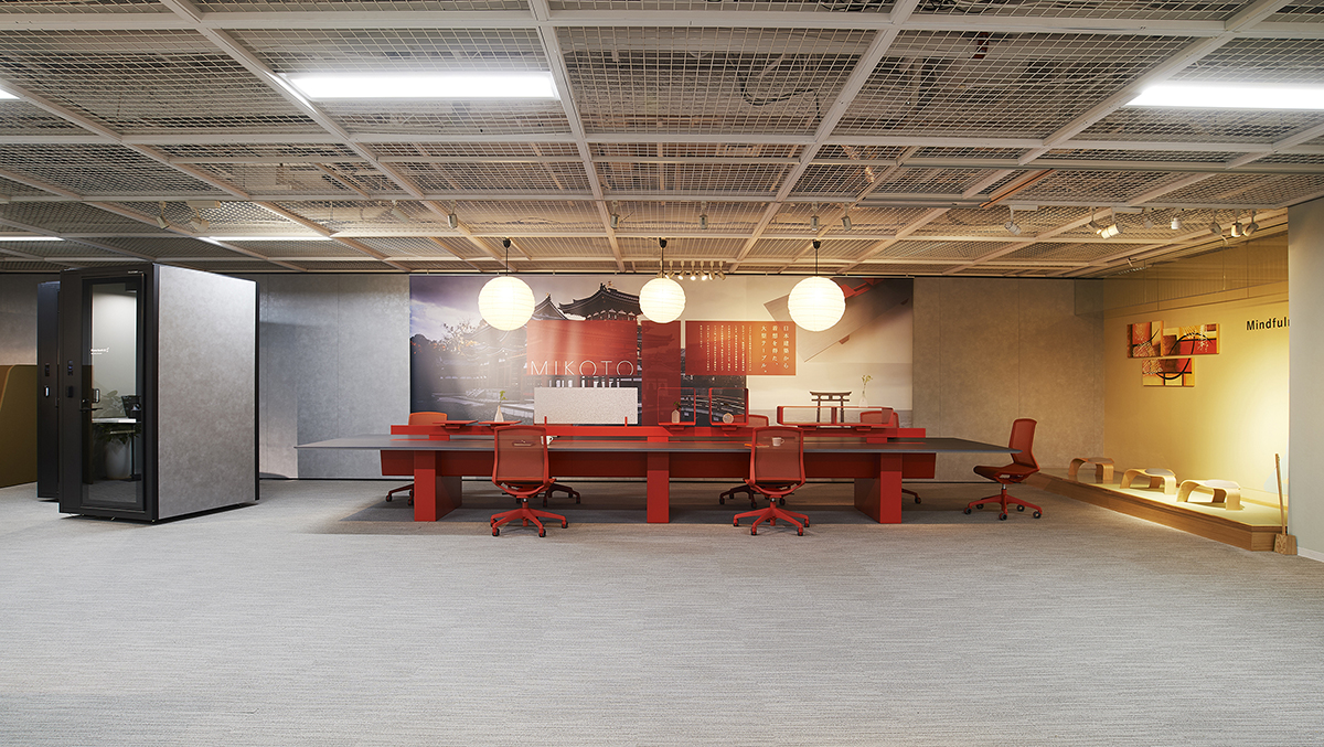 「MIKOTO」は和の素材感とストラクチュアルなデザインで、象徴的で上質な空間を演出します。鳥居や瓦など日本建築を彷彿とさせるデザインとマテリアルで、空間に凛とした印象を与え、多彩なアドオンオプションは、デザイン性のみならず機能性も付加します。これからのオフィス空間の象徴となる一台です。