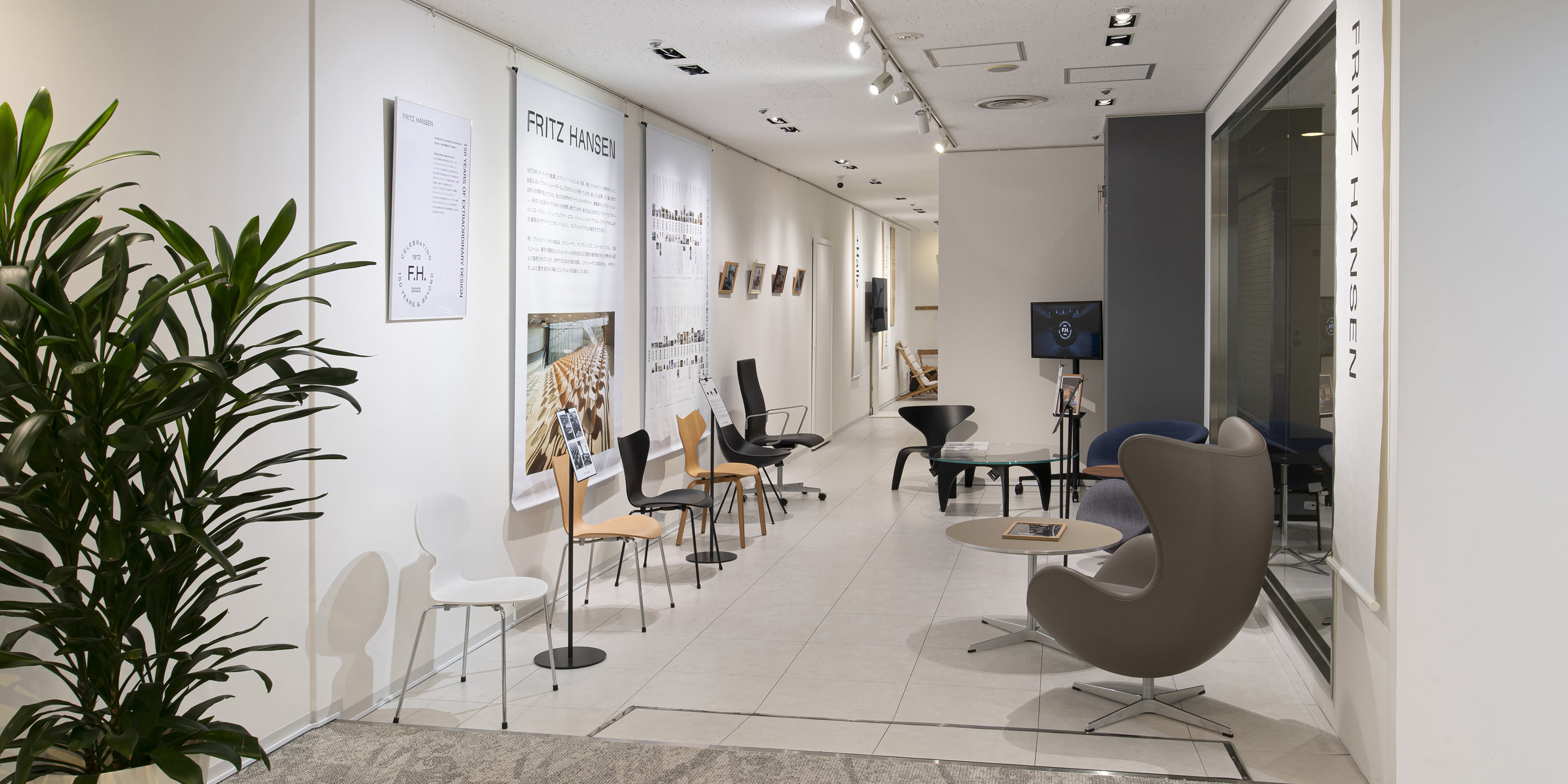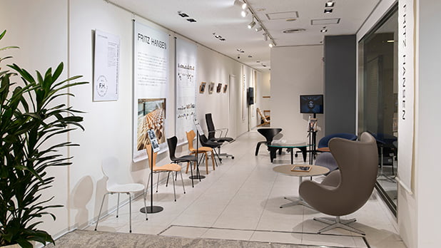 フリッツ・ハンセンは2022年に創業150周年を迎え、アルネ・ヤコブセン、ポール・ケアホルム、ハンス・J・ウェグナーなど、家具デザインを決定的に変えた巨匠たちが手がけた先見性あふれるデザインを製品ともに紹介します。