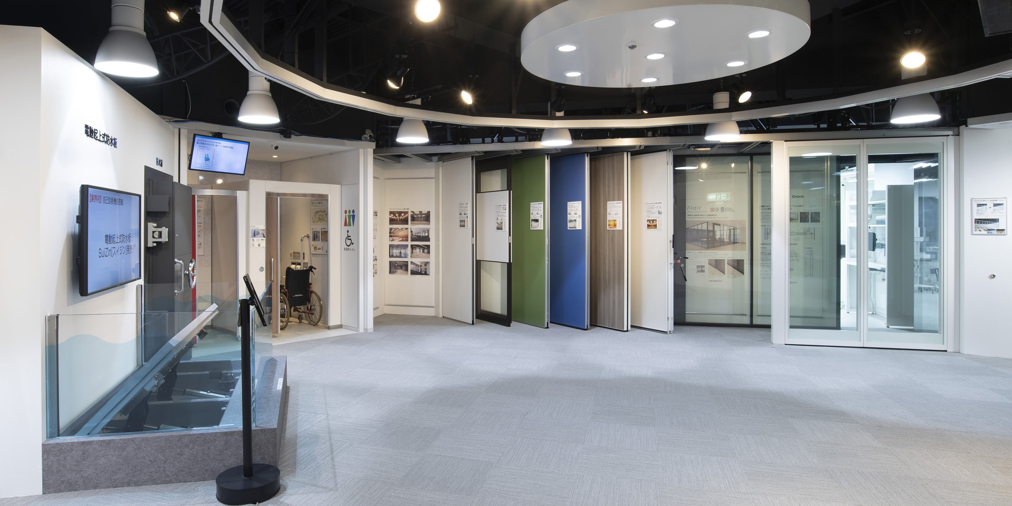 多彩な空間演出が可能なパーティションや快適で安全なトイレブースなど間仕切・建材内装製品をご紹介します。また、オフィスや施設の安全を水害から守る防水扉や防水板もご覧いただけます。