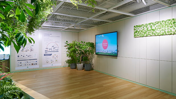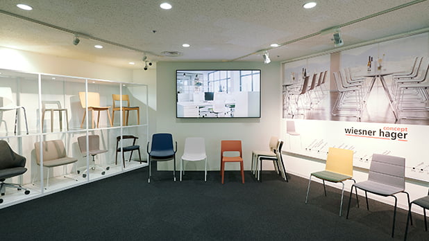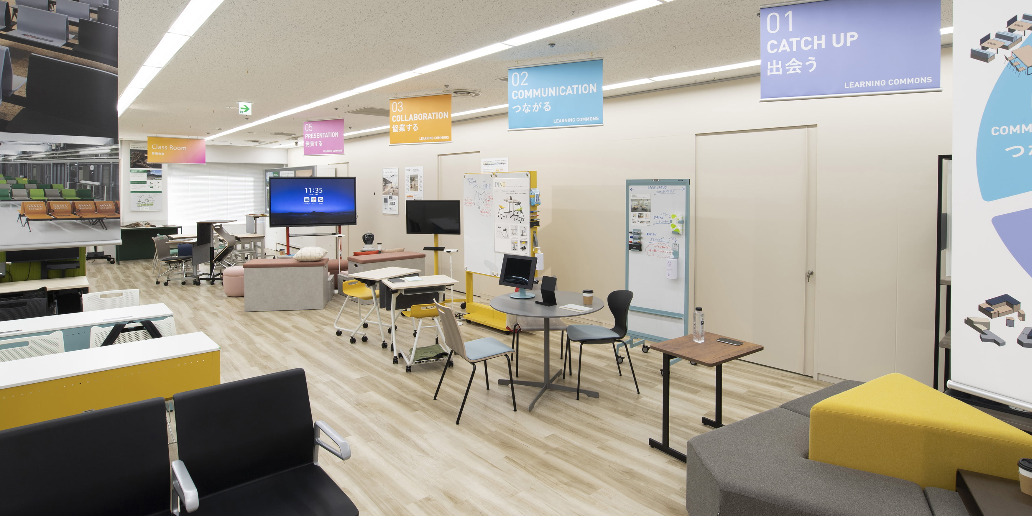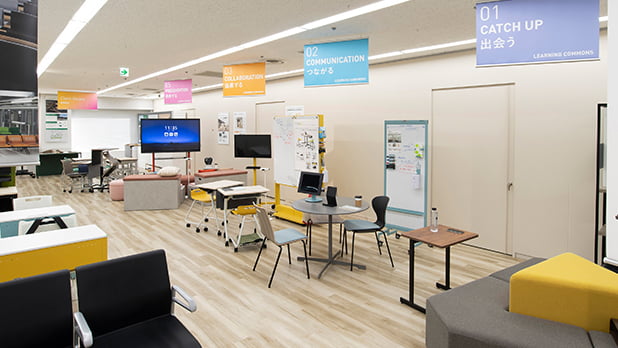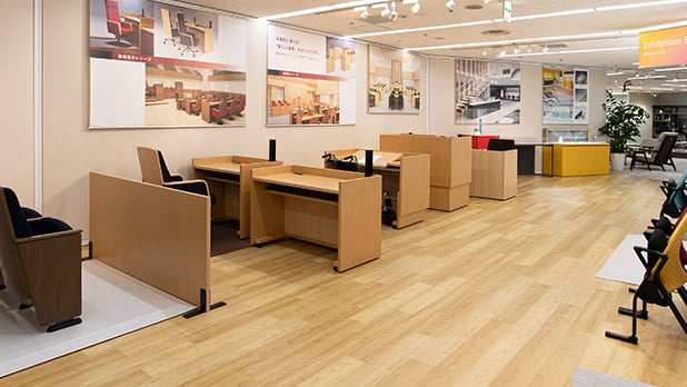 リモート授業やアクティブラーニング、環境に配慮した製品など、新しい学びの空間を提案しています。このエリアでは初等・中等・高等教育など、それぞれの年代に応じた環境を展開しています。