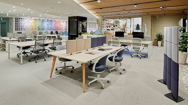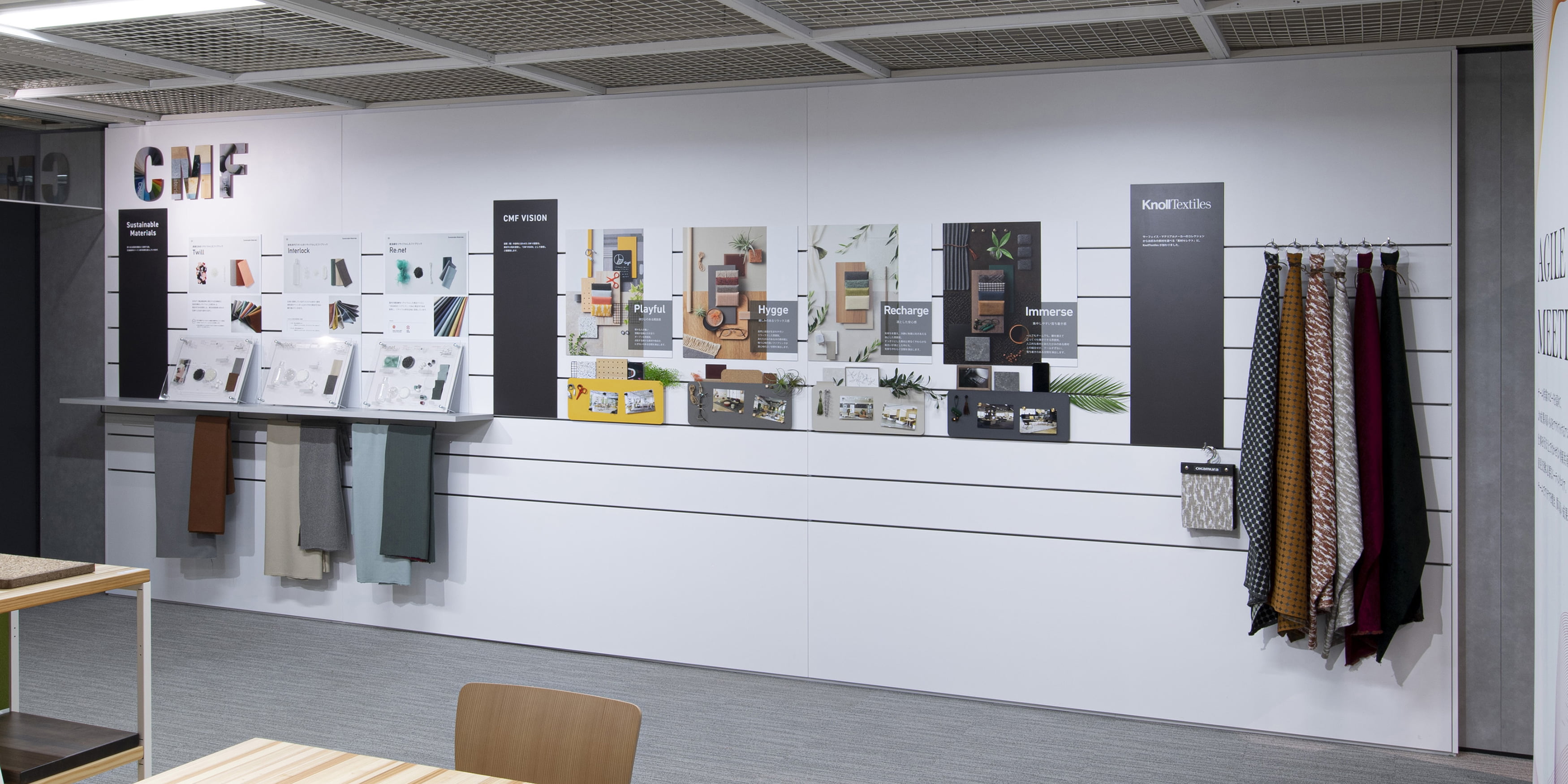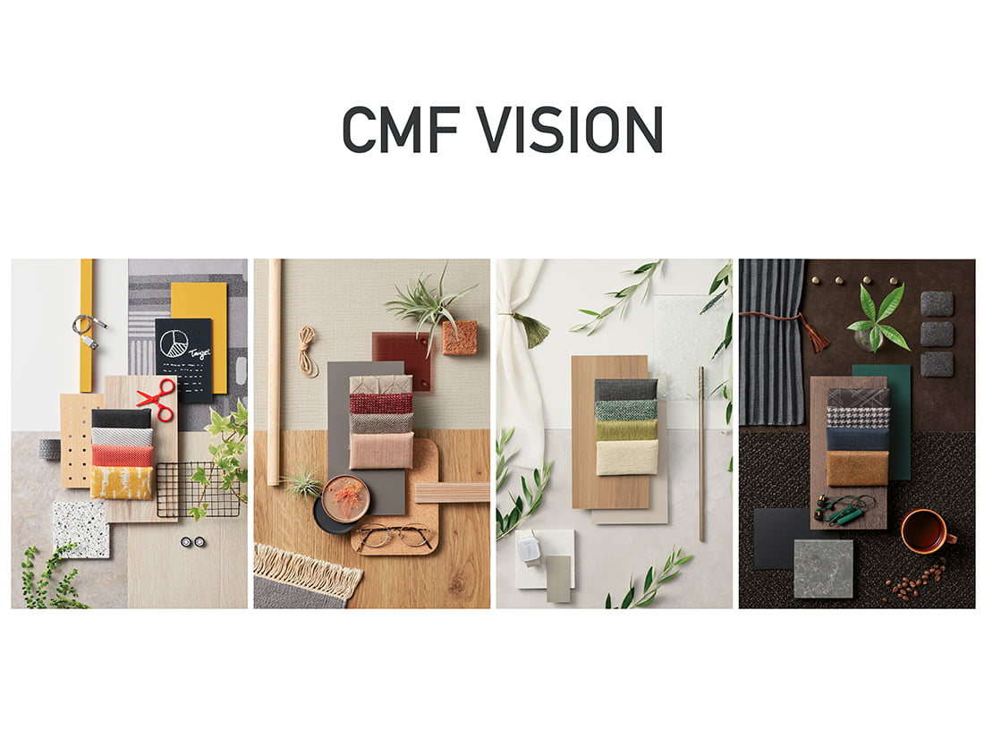 一人ひとりが作業や目的に合った場所を選び、のびのびと働ける。そんな「はたらき心地」のよい空間をCMFの視点から提案します。今年は、「サステナビリティ」素材の開発とCMFVISIONのアップデートを行っています。