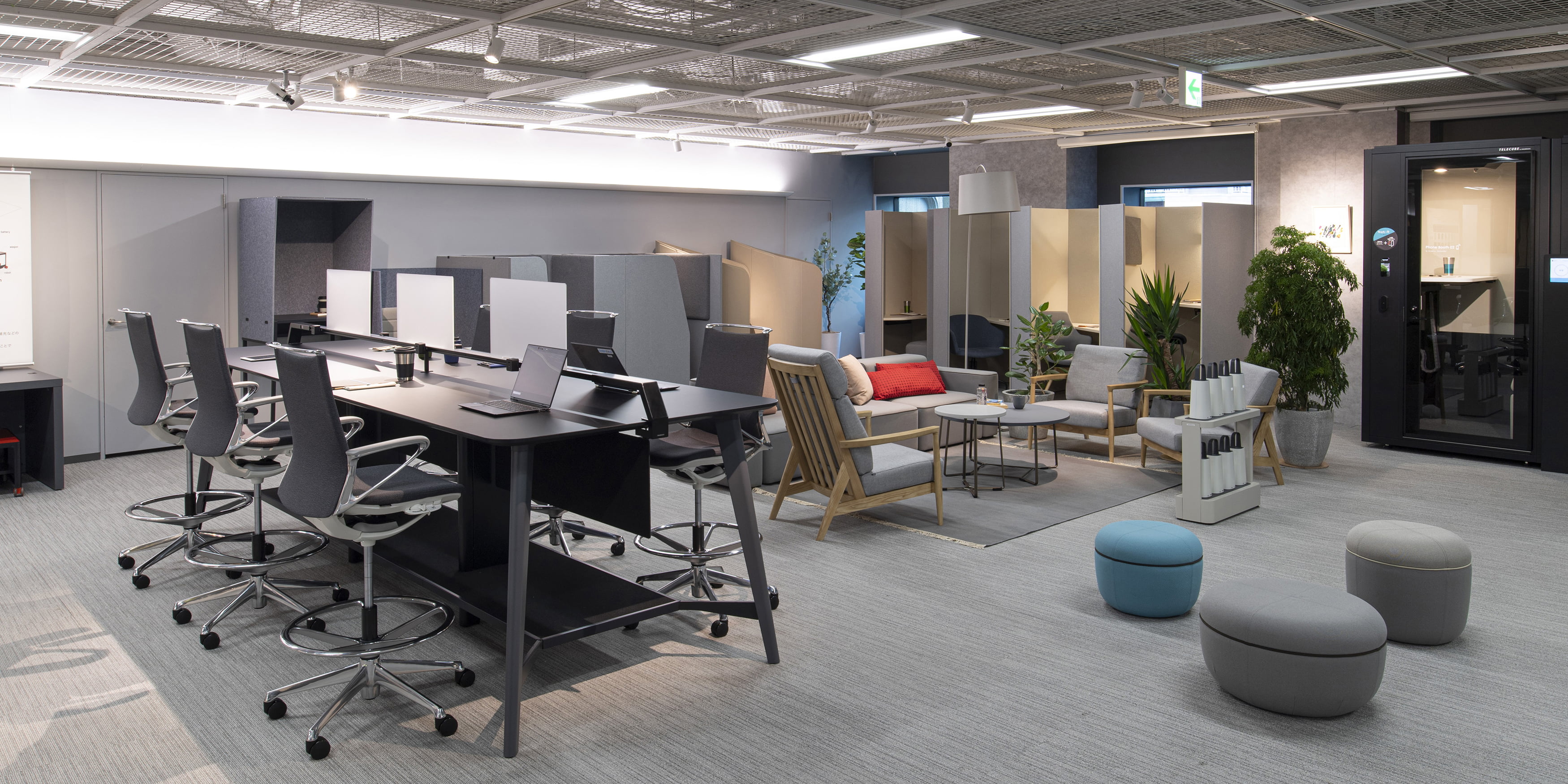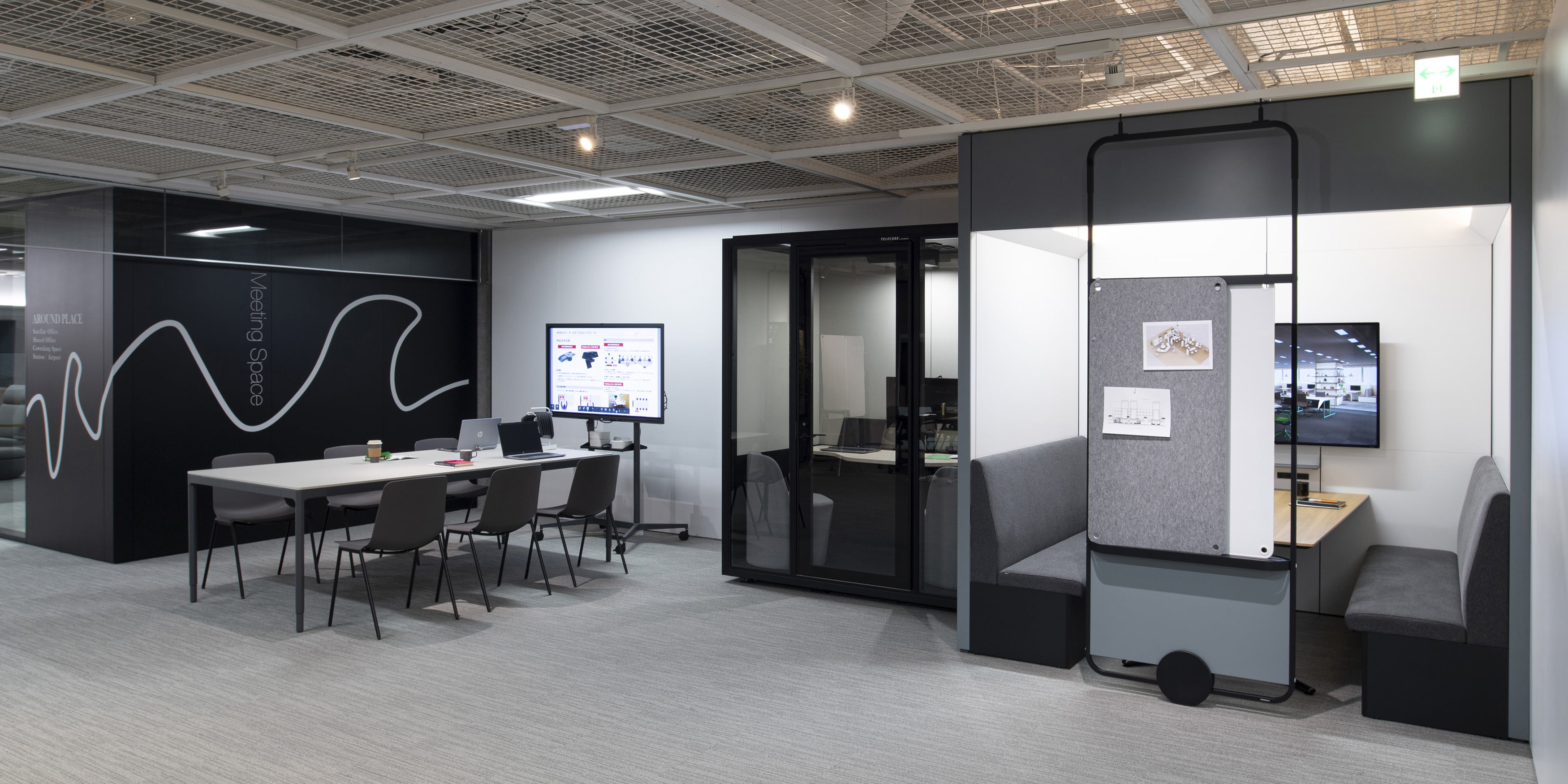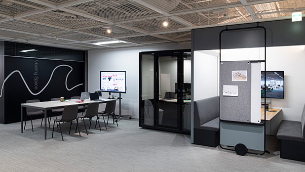 チーム作業のスピードを高めて、より成果の高いものをアウトプットするアジャイルエリア。仕事を行なう上で欠かせない情報共有や意見交換に必要なミーティングエリア。チームでアイデアを磨き、質の高い成果を生み出すことができます。