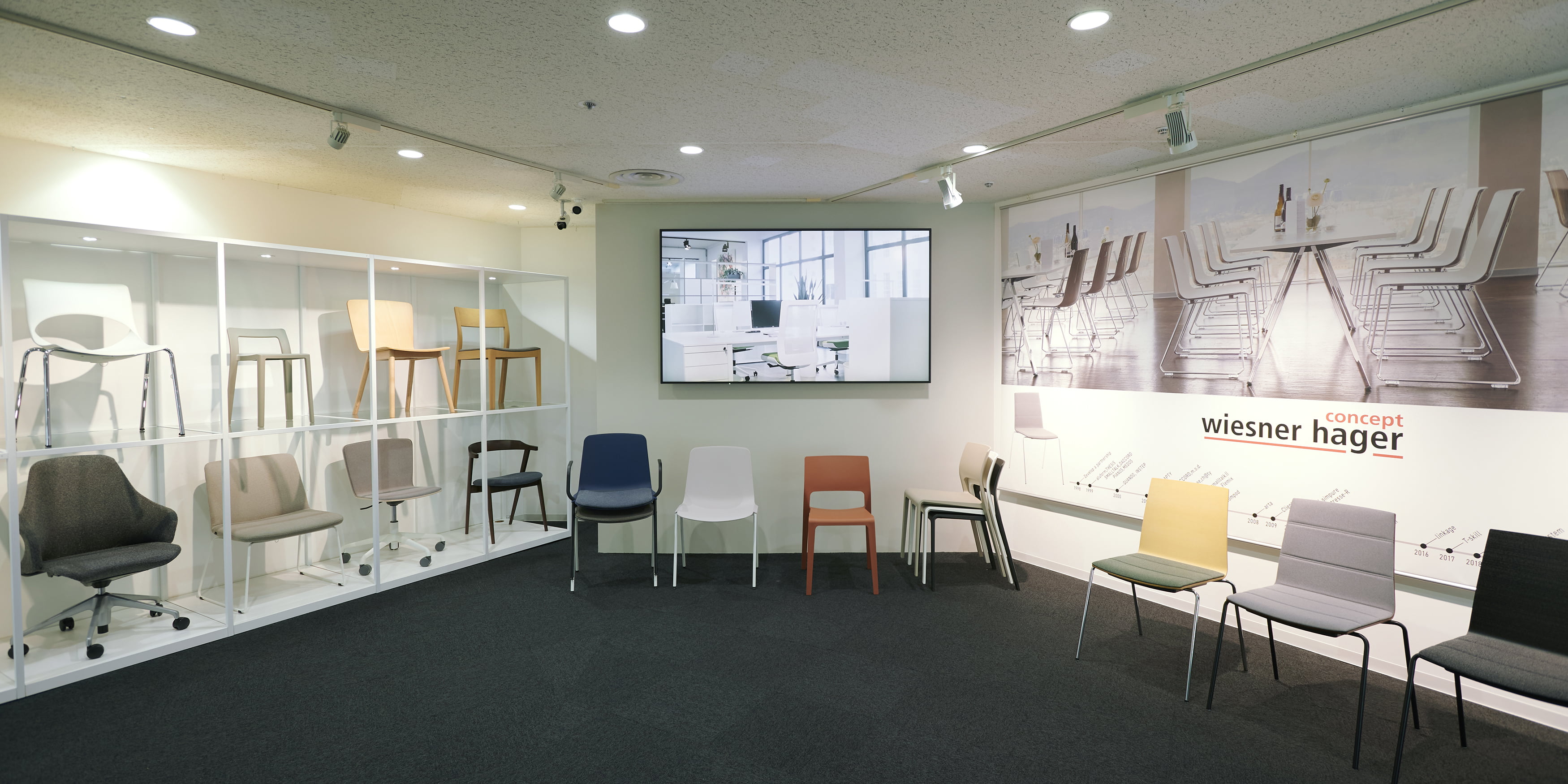 資料館や学校、図書館でも多く採用されていたアクリルショーケースをリニューアル、従来の製品にないカラーバリエーションとデザインを活かし、企業エントランスやショールームなどあらゆる空間にマッチします。