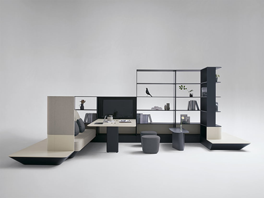 多彩なレイアウトと張材で、様々なラウンジ空間を提供します。広い座面で姿勢を崩して自由な姿勢を取ることができ、背に座ることもできるので、リラックスした雰囲気で気軽なコミュニケーションを誘発します。