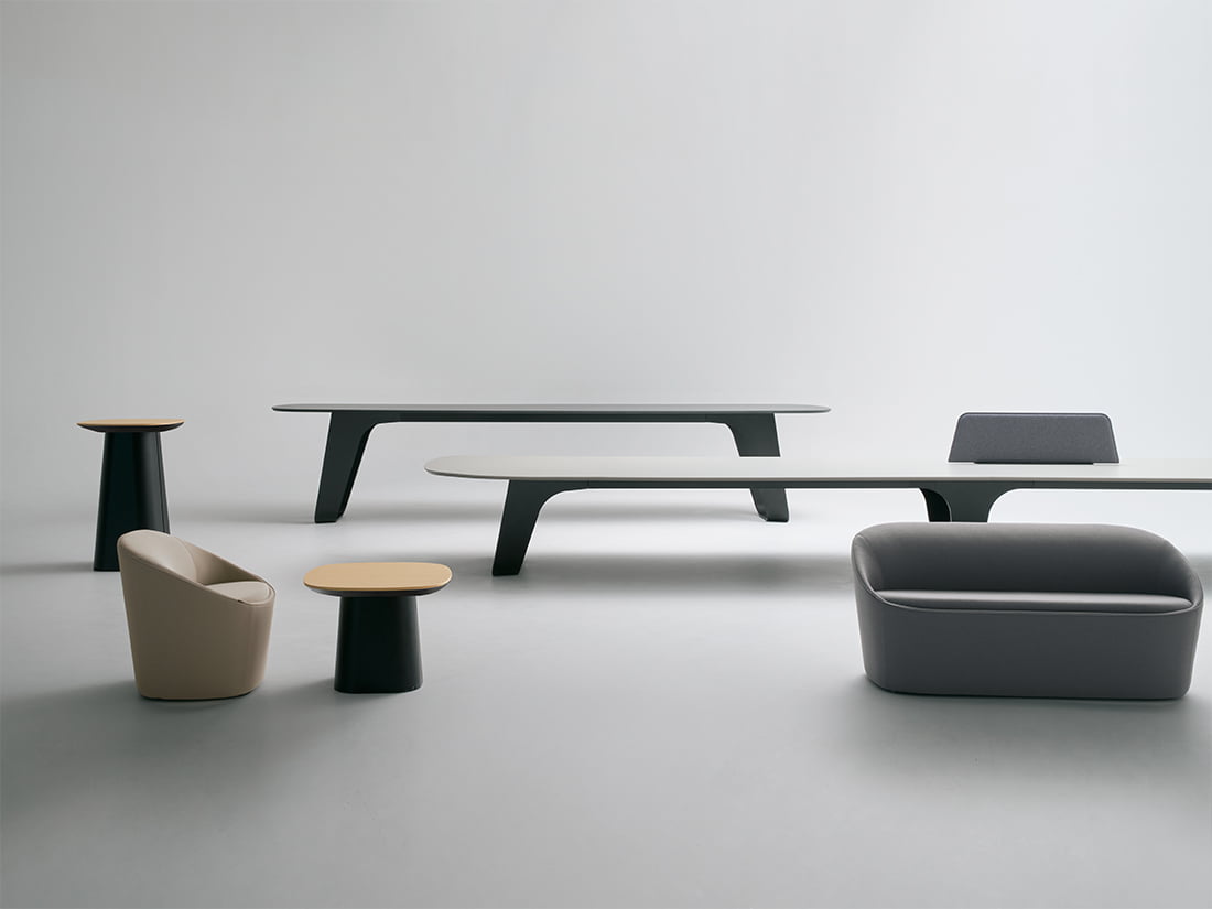 自然からインスピレーションを受けてデザインされたテーブルとチェアのコレクション。美しく柔らかな曲線を描いたフォルムがワークスペースの雰囲気を和らげ、より良いアイデアやコラボレーションが生まれる空間を実現します。