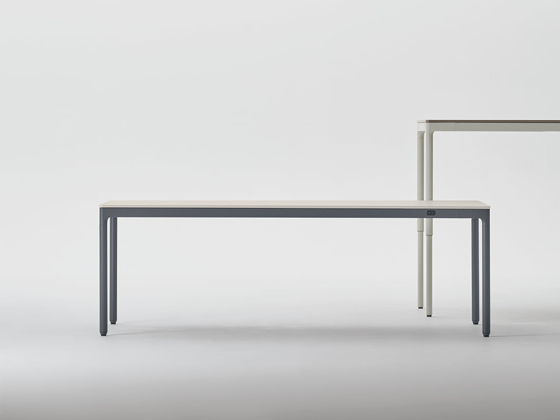 "立つ"と"座る"という上下昇降の機能はそのままに、美しさと使いやすさにこだわった上下昇降テーブル。そのモダンなデザイン性とスマートな機能性は、使う人の気持ちと身体を開放し、快適で心地よいひと時を作ってくれます。
