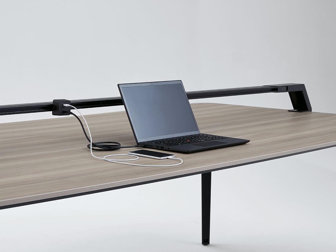 USB給電専用コンセント。コンセントの位置と数はライン上で自由に変更できます。USB PD対応のノートパソコンへの給電(最大60W)が可能で、ACアダプタレスのスマートなワークスタイルを支援します。