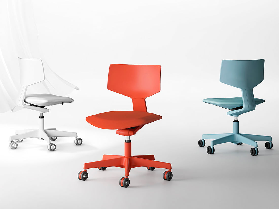 従来のリクライニングに加え、前傾や左右のベンディングなどで身体への追従性を高めた「アクティブダイナミック」という新たな提案。アジャイル空間に最適なシーティングです。