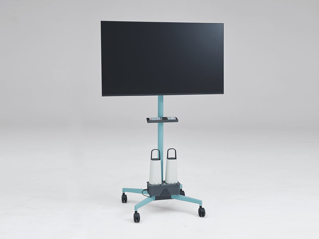 発売以来好評のモニタースタンドS(標準タイプ)にOCバッテリーを装備、今までのように電源を気にせず気に入った場所に簡単に移動、即座にミーティング、コミュニケーションの活性化につながります。
