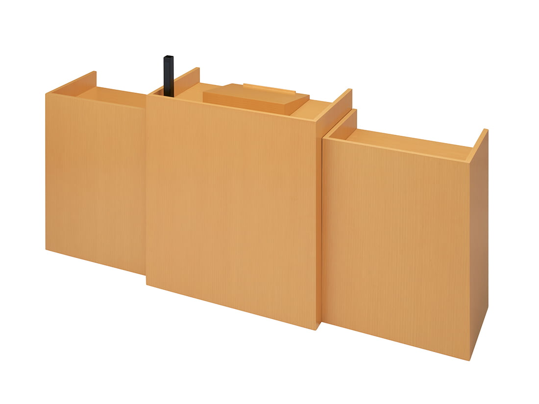 格調高い木質空間に調和するシンプルなデザイン。発言席・質問席机は上下昇降(電動)/天板角度調整機能を有し、さまざまな人が使いやすいよう配慮されています。