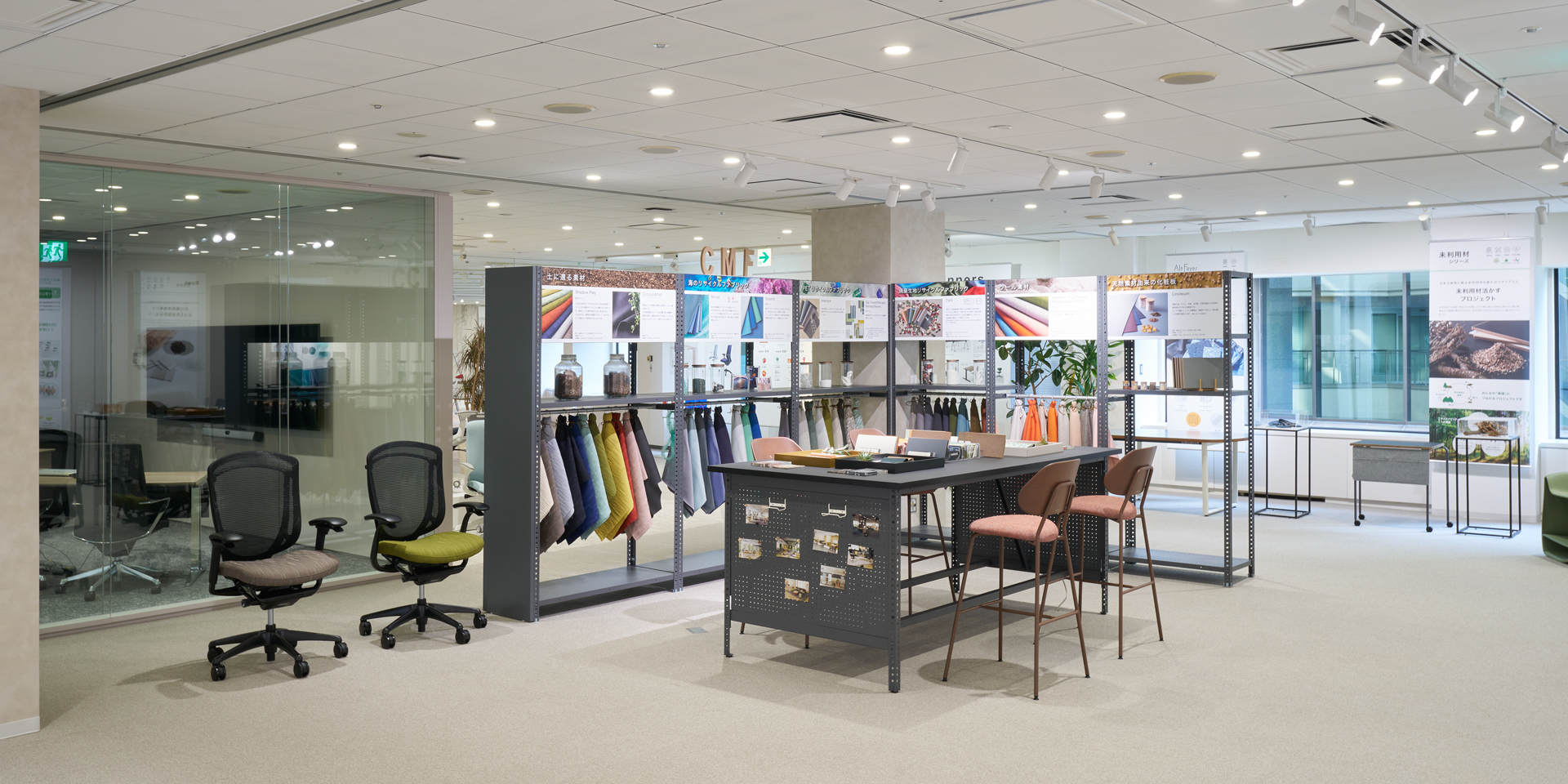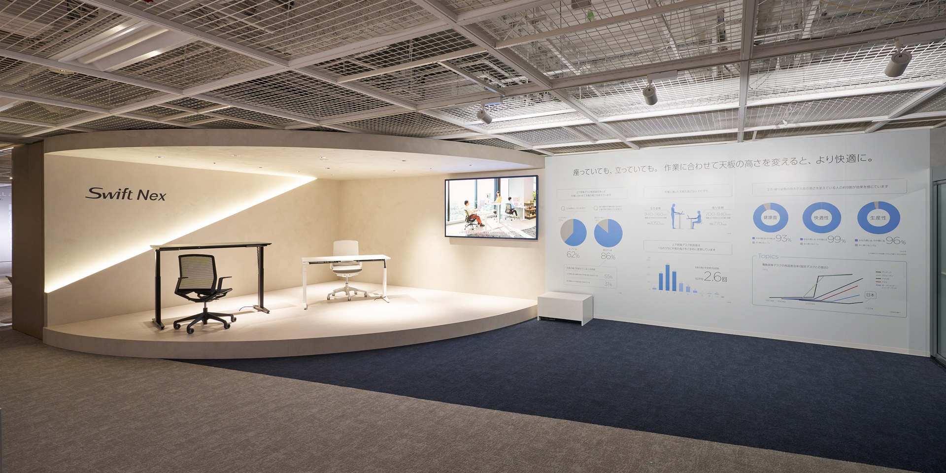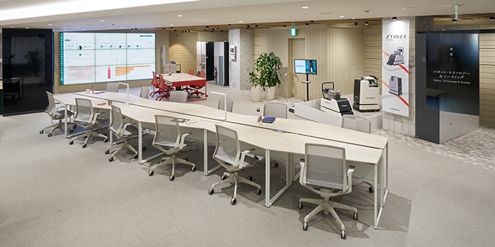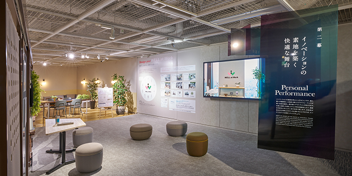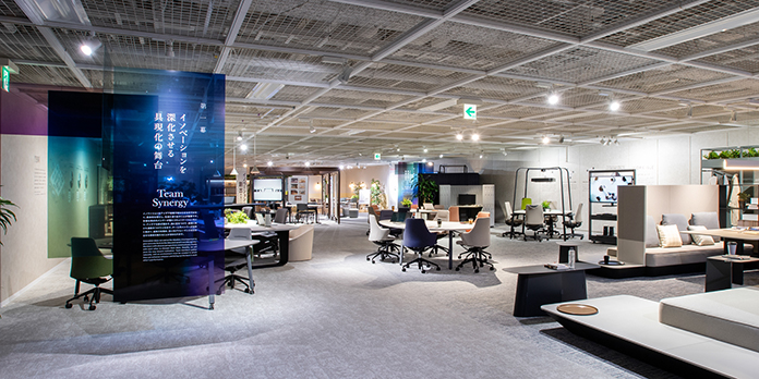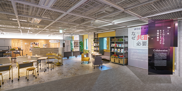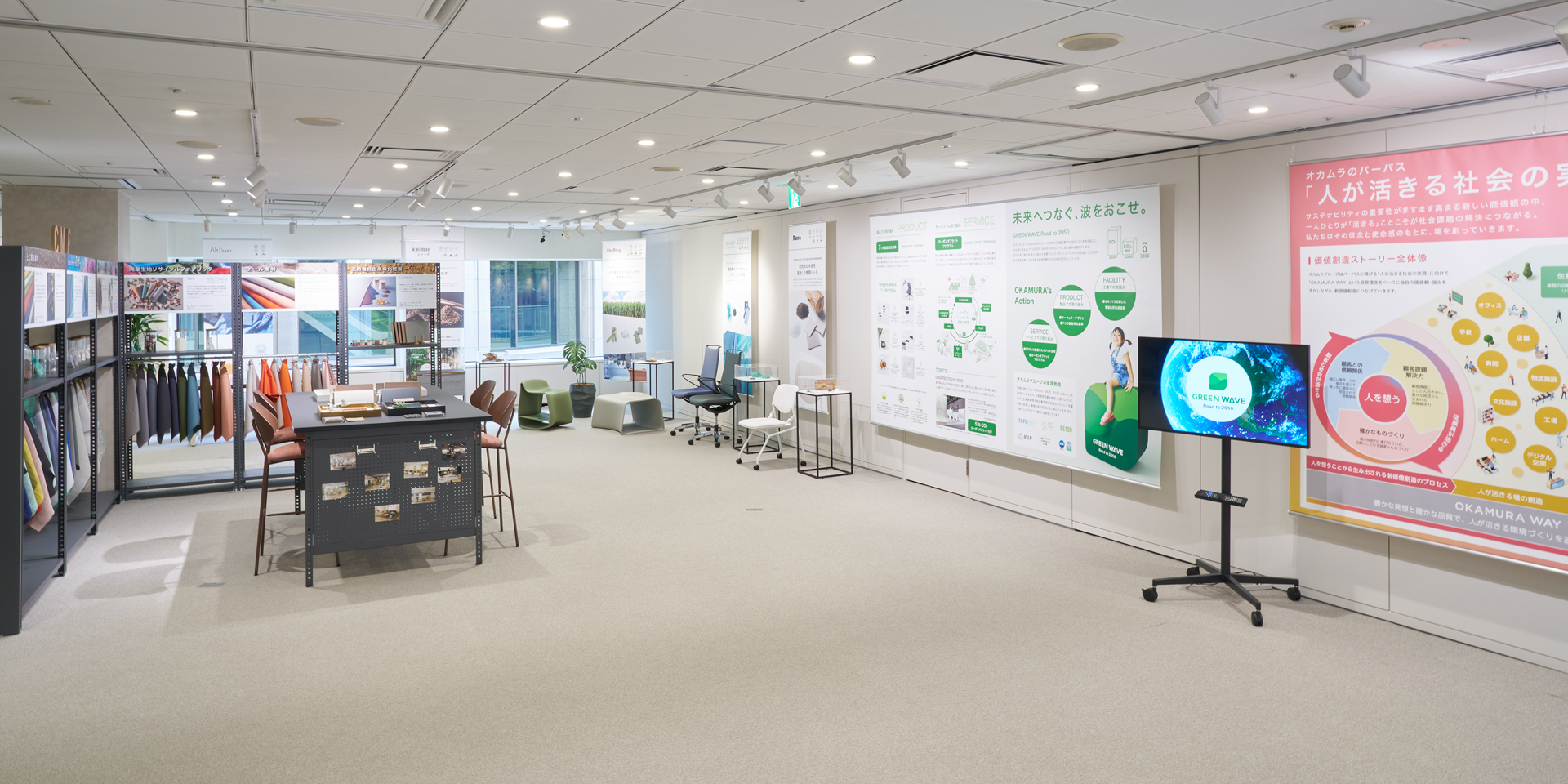 オフィスがイノベーションの舞台になるためには場を創ることだけではなく、運用も重要な要素です。オカムラの社員が実際に働いているオフィスや、今までの働き方に関する研究の取り組みを紹介しています。また人が活きる環境づくりのためのオカムラの社会に向けての活動や、モノづくりへの取り組みもプロダクトを展示しながら紹介します。