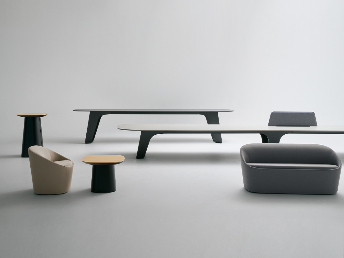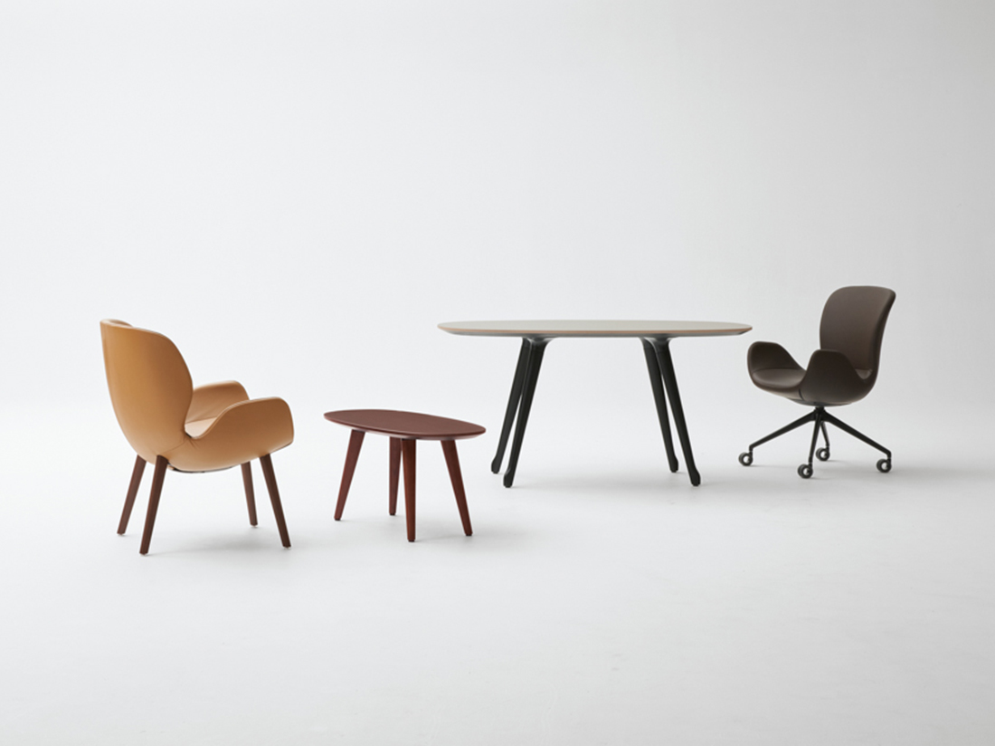 自然からインスピレーションを受けてデザインされたテーブルとチェアのコレクションです。美しく柔らかな曲線を描いたフォルムがエグゼクティブ空間の雰囲気を和らげ、重大な意思決定からカジュアルな会話まであらゆるシーンに寄り添います。