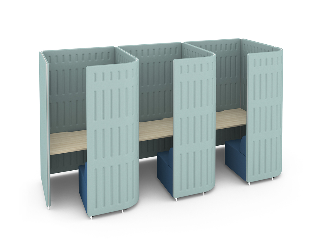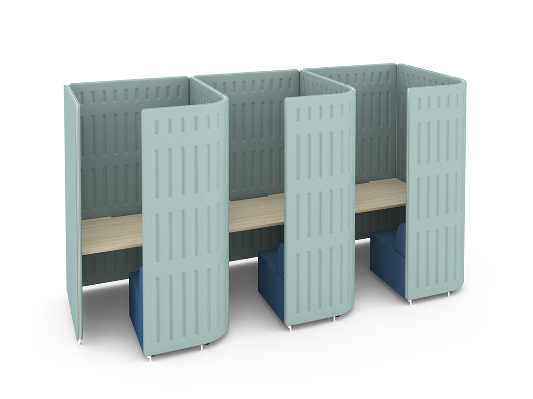 Cubicle Work Station キュービクル ワーク ステーションは新しいカタチの個人ブース的なシーティングです。単体での使用はもちろんのこと複数台の組み合わせにより、様々な公共スペース、一人だけのプライベート空間から、隣り合って座ったり、向き合って座ったりと組み合わせにより様々なシーンで対応可能です。