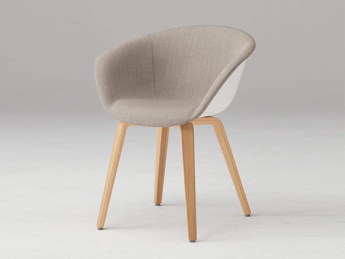 カジュアルな空間に調和する、柔らかいフォルムのカフェチェアです。しっかりと体を包み込むシェル形状により、快適な座り心地を実現しました。脚タイプのバリエーションが多いため、カフェ空間全体に統一感を持たせます。