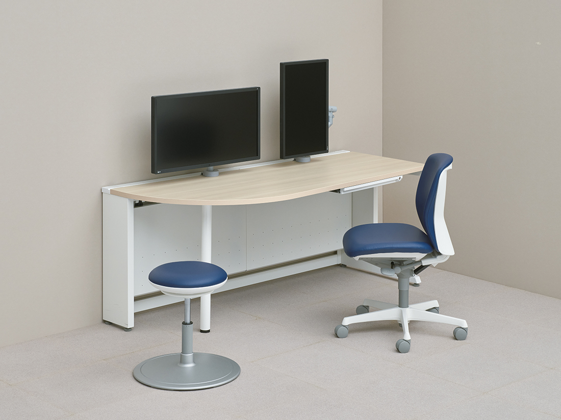 機能とカラー・サイズバリエーションを充実させた、スタンダードタイプの診察デスクです。診察室空間を有効に使用できる収納ユニットと、クラーク(医師事務作業補助者)の専用デスクを品揃えしています。