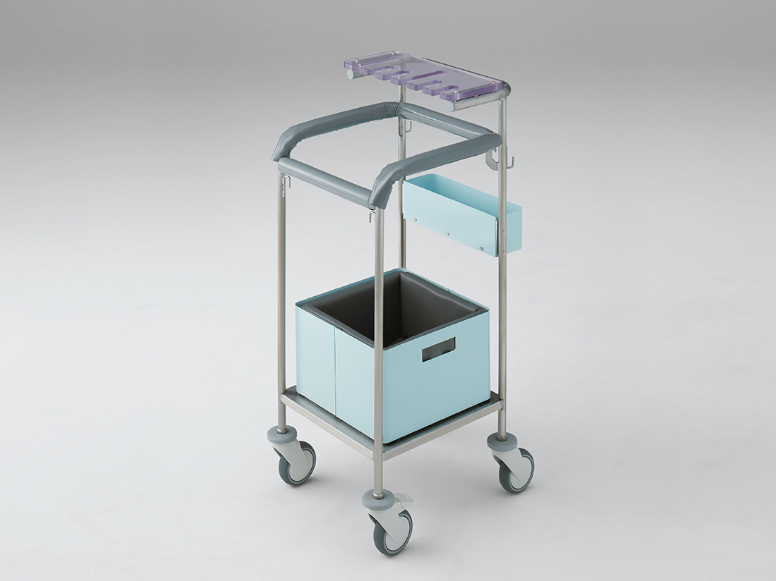 内視鏡の「ベッドサイド洗浄」と、次の洗浄工程への「運搬」を同時に行えるカートのご提案。内視鏡先端が接触する可能性がある部分をクッションで覆っているため安全に洗浄でき、同じ検査で使う複数の内視鏡や周辺物品をまとめて運搬します。