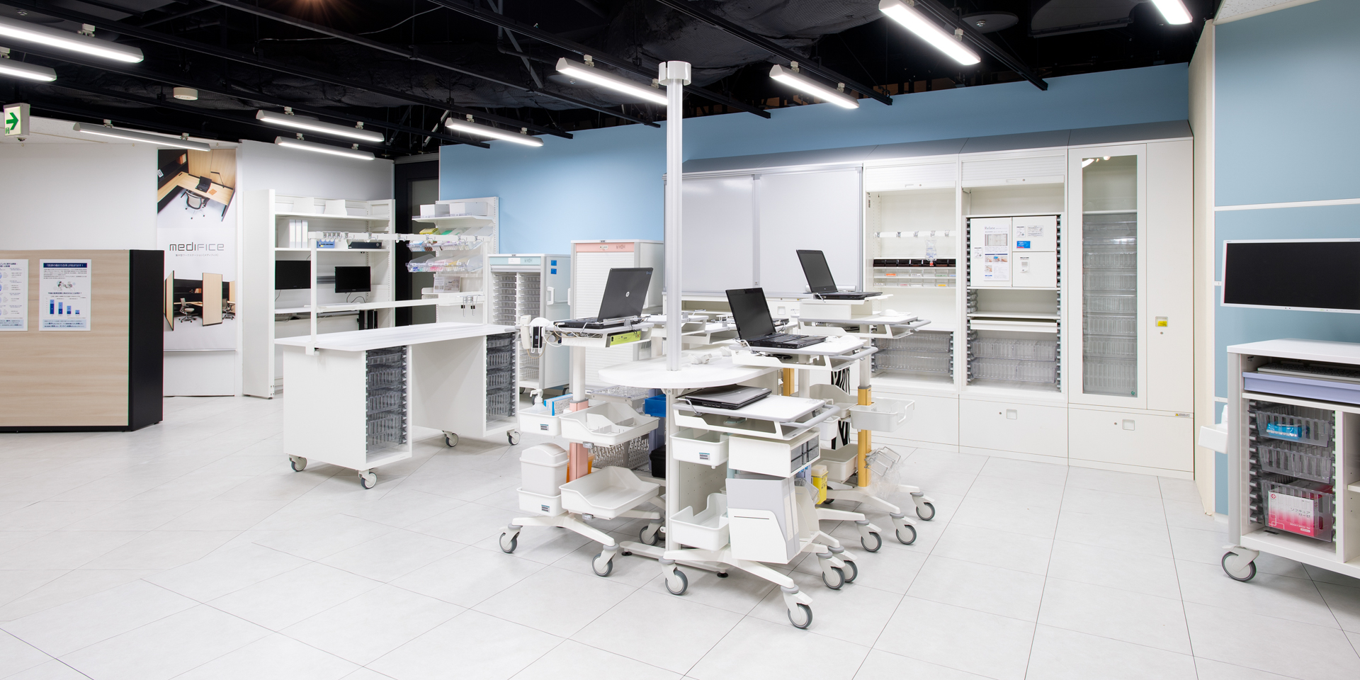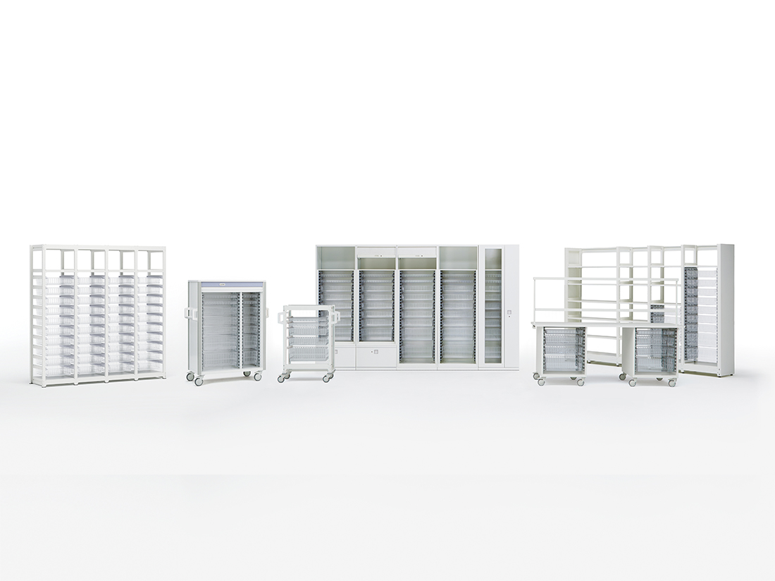 様々な用途に合わせて業務の効率化を図り、新しいワークスタイルを実現させる診療材料収納「Relate」は、スペースを有効活用して医療スタッフを協力にサポートします。