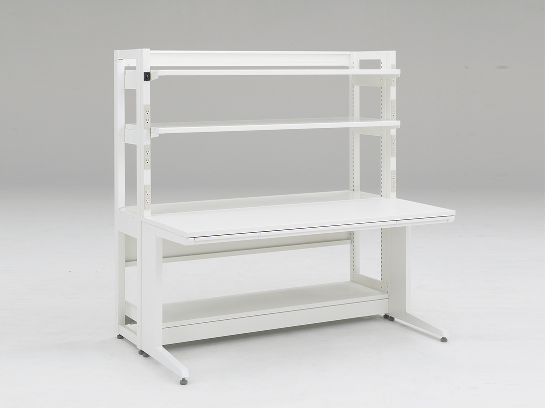 エンジニア向けに開発された実験台です。重量機器の設置にも配慮し、天板面の最大積載質量は150㎏、棚板の最大積載質量は100㎏としています。また、電源ブレーカーとコンセントを支柱に標準装備しており、安全に機器を接続することが出来ます。