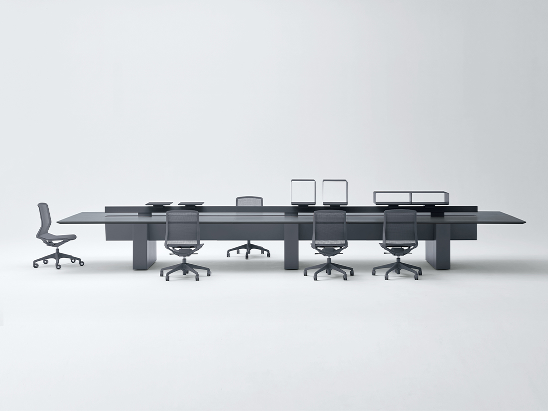 日本建築から着想を得た、大型デザインテーブル。鳥居や瓦など日本建築を彷彿とさせるデザインとマテリアルで、空間に凛とした印象を与え、多彩なアドオンビームオプションは、デザイン性のみならず機能性も付加します。