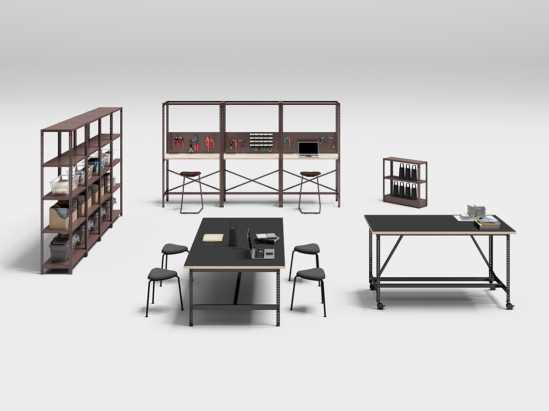 理想の空間でアイディアを形に。デザインや設計に関わる様々な⼈が、安⼼してものづくりができる。 テクニカは「作業⼯房やガレージ」のように使ってほしい。 そんな思いを、ものづくりの視点からカタチにしました。