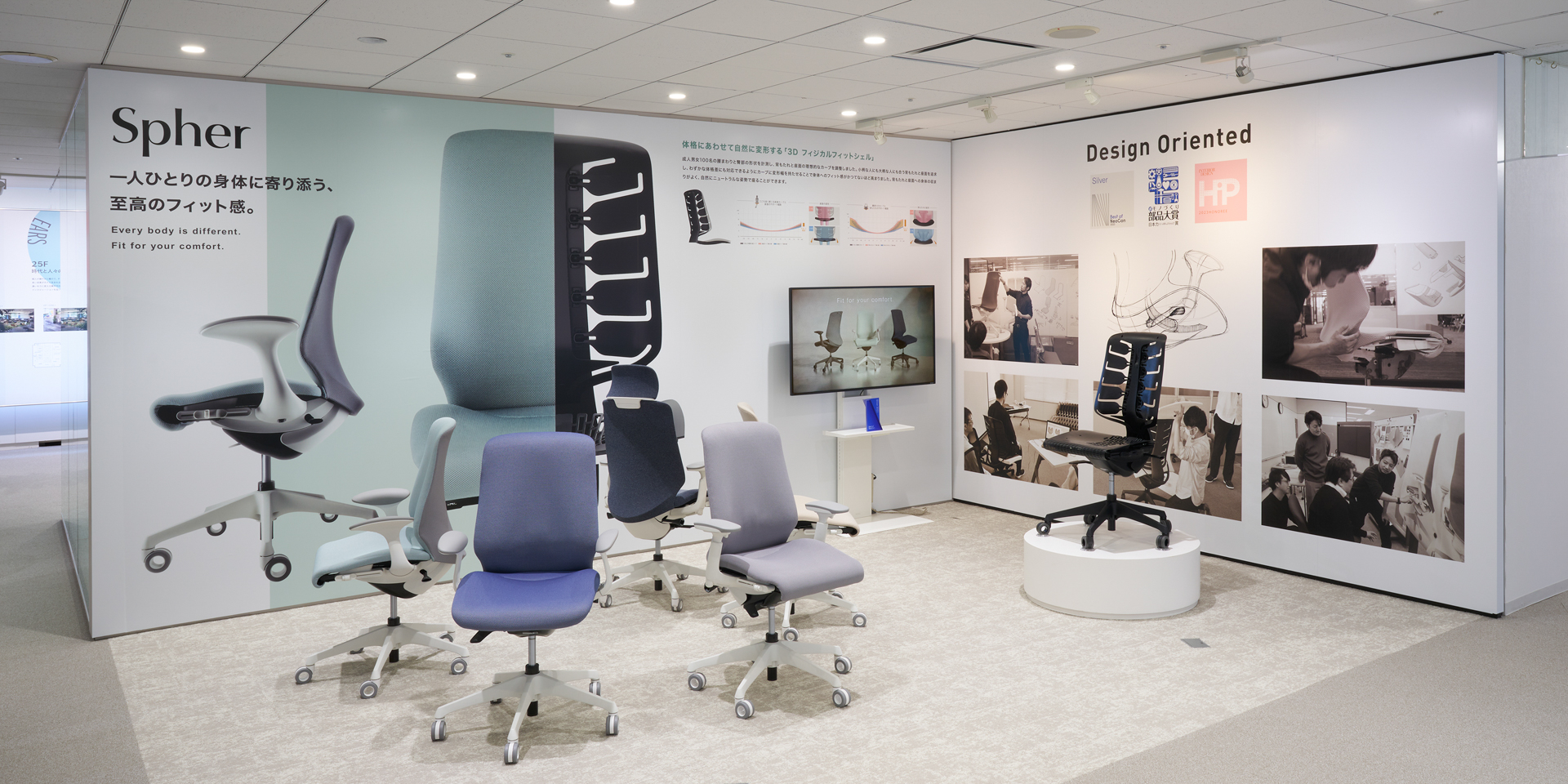 従来のリクライニングに加え、前傾や左右のベンディングなどで身体への追従性を高めた「アクティブダイナミック」という新たな提案。アジャイル空間に最適なシーティングです。