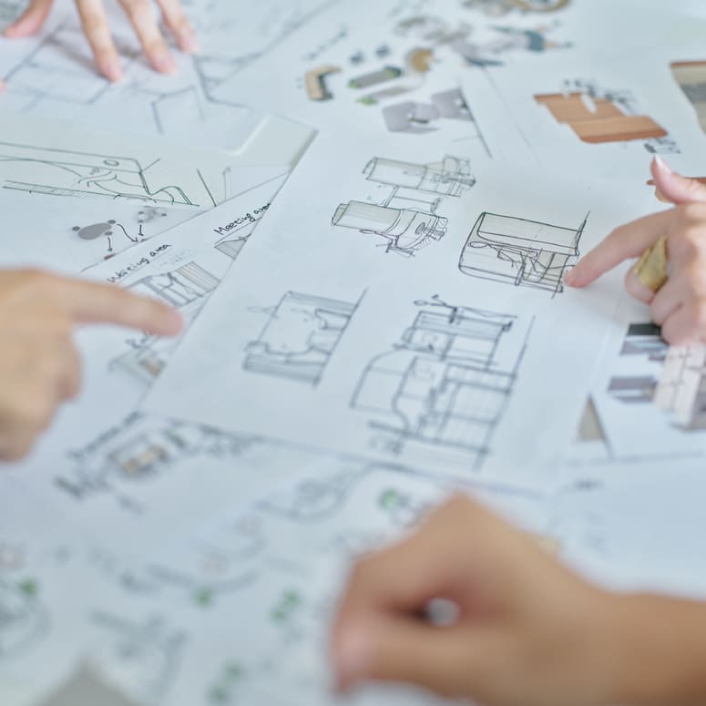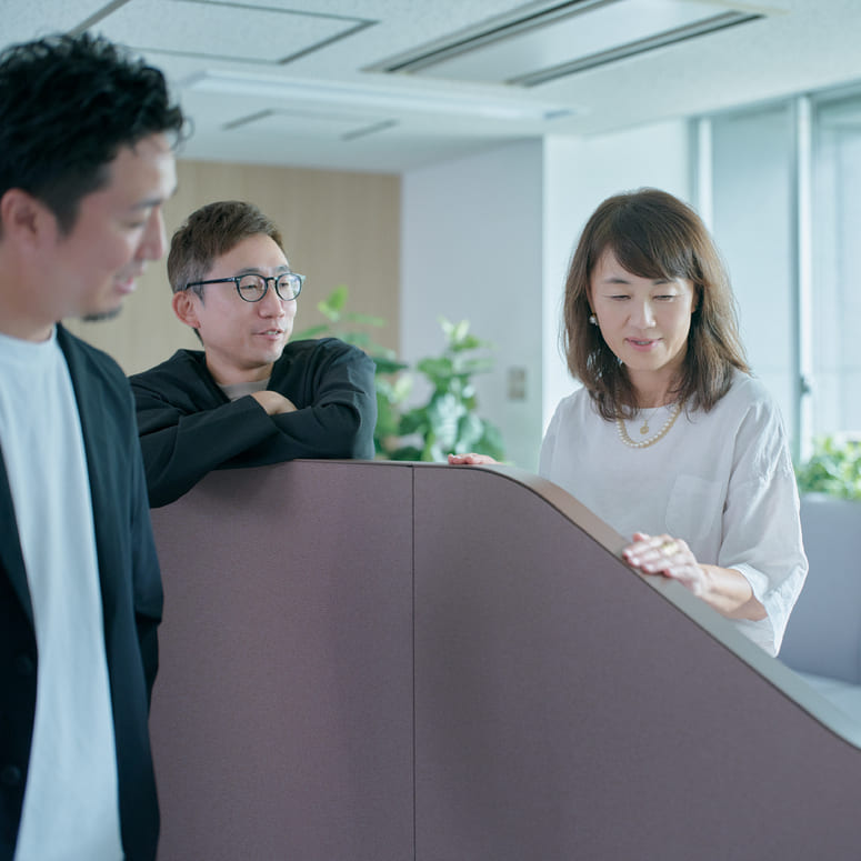 斉藤開発チームであれこれ話し合う中で、開放的な空間が重要であることに変わりはないのですが、その中でも人と人が出会いやすい場所や話しやすい場所、視線を合わせやすい仕掛けなどをつくってみようという方向性が定まりました。今までのパーティションは何かを隠すためのものでしたが、そうではなく空間をゆるやかに仕切ったり、動線によって人の動きを混ぜたりしたいという考えを実現できないかというリクエストをプロダクトデザイナーの廣瀨に託しました。