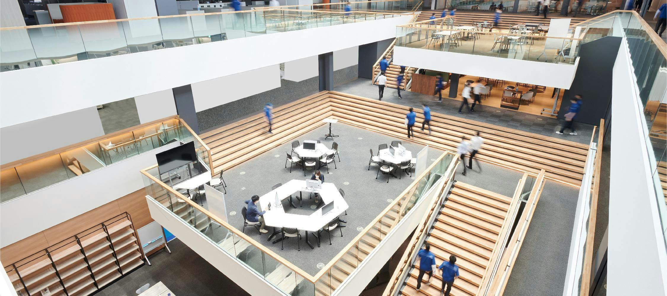 まずは新オフィスのポイントとなる、中央のアトリウム空間からご紹介します。