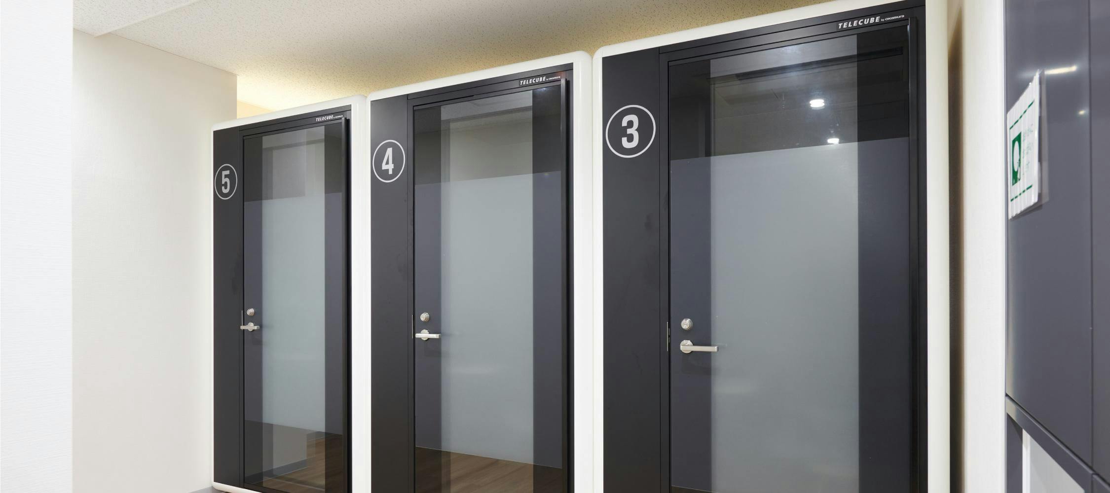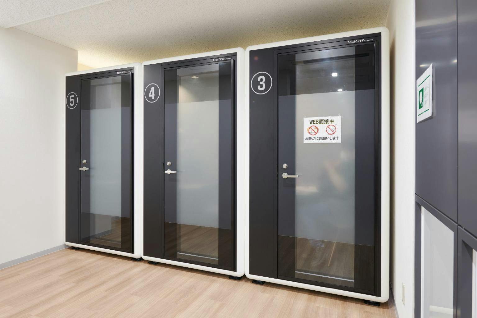 同学校では、コロナ禍での就職活動においてオンライン選考を受ける場所に窮する学生を支援するために、2021年3月に1人用のテレキューブ by OKAMURAを5台導入。 場所の提供だけでなく、学生が最大限実力を発揮できるよう様々な支援を行っています。