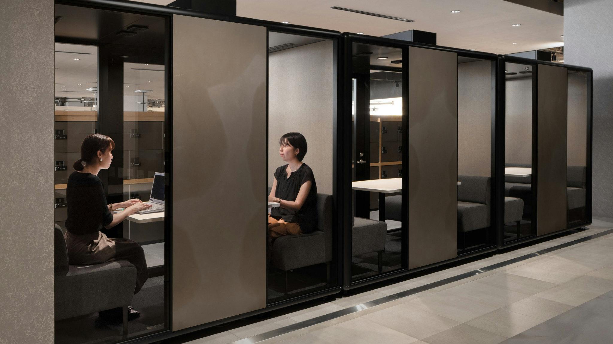 「今回オカムラが納入したモバイルロッカーと『TELECUBE by OKAMURA』というワークブースの筐体表面は、今までオカムラでは実績のなかった『素地仕上(そじしあげ)』と呼ばれるナチュラルな仕上げに挑戦しました。 スチール面に有色塗装をせず透明なクリア塗装を施す、という特注品です。 素地仕上にするのは、私たちのデザイン・コンソーシアムからのご提案ではありましたが、実はこれがとてもチャレンジングで、本当にたいへんな仕事でした」(営業:須永)