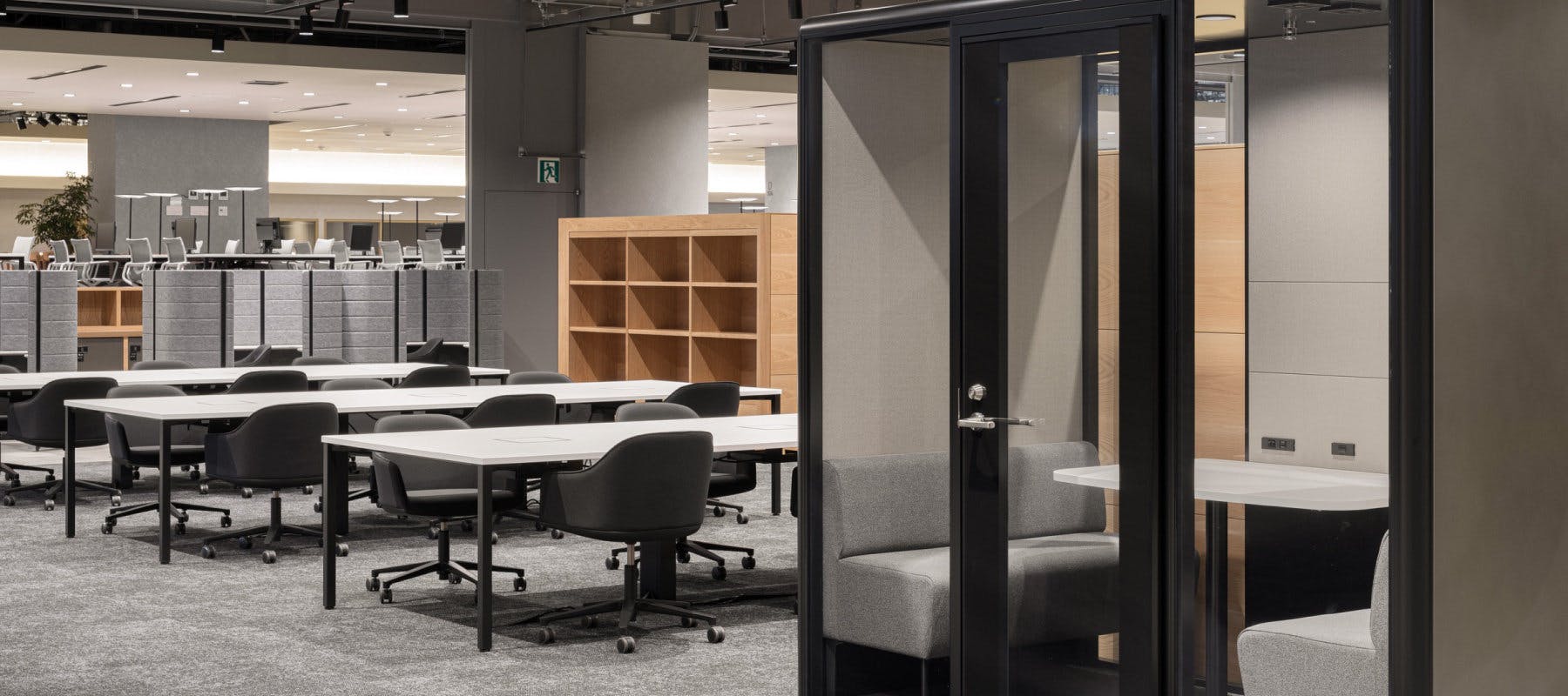 「私たちが今回納入したのはスイスのVitra(ヴィトラ)と、デンマークの+Halle(プラスハレ)、同じくデンマークのFRITZ HANSEN(フリッツハンセン)。 これら以外の輸入家具ブランドは、他社さんからの納入という分担でした。 今回はVitraだけでも椅子やソファ、テーブル、ブースなど、20アイテムほどあったと思います。 KADOKAWAさんが元々Vitraを気に入っていて、スイスの本社にも足を運ばれていたことがあるとも聞きました。 Vitraは働き方から家具をデザインしているブランドなので、KADOKAWAさんのコンセプトにもマッチしていたのだと思います。 また今回、一部のエリアはVitraの家具で揃えていただいたので空間が引き締まり、色の選択もカラフルにせず、『素』のイメージでカッコいいオフィスに仕上がっていると思います」(輸入家具担当:谷田)