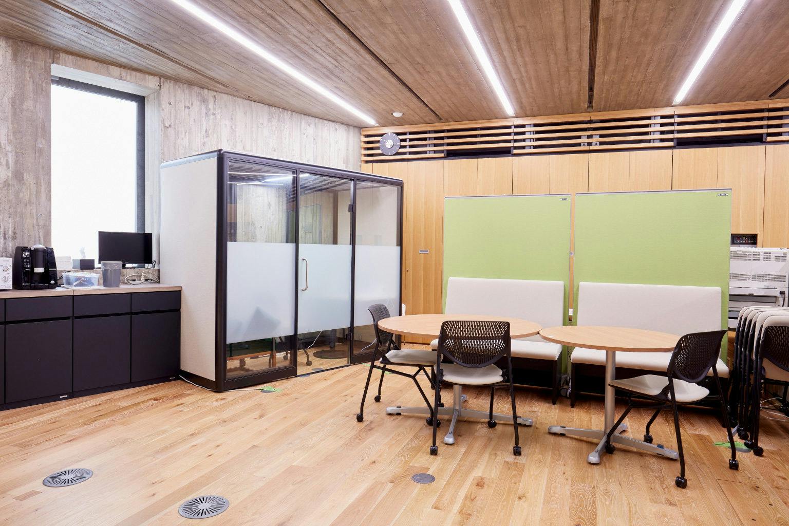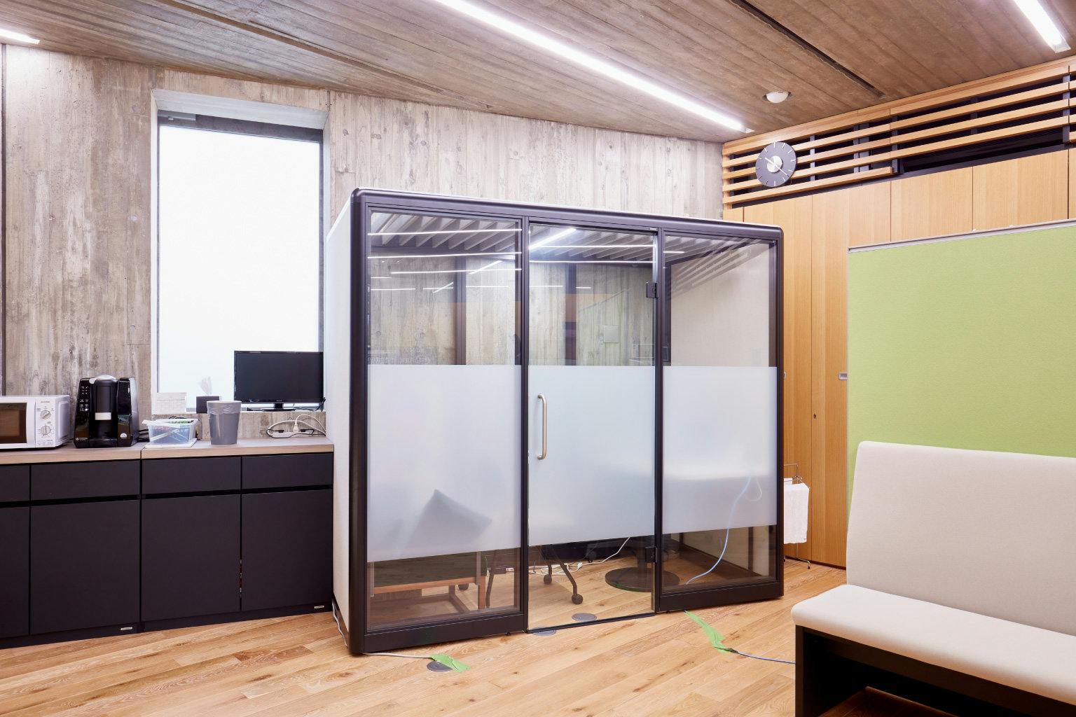 しかし、コロナ禍前は正直どのように利用していいかわからず、稼働率はあまり高いとは言えませんでした。 新型コロナウイルスの流行によってオンライン会議が主流となってからは、徐々にブースの使い方が定まってきましたね。 職員がブース内でオンライン会議に参加することが増え、ほぼ毎日誰かが利用しています。 長い会議だと半日~1日ブース内で過ごすこともあります。