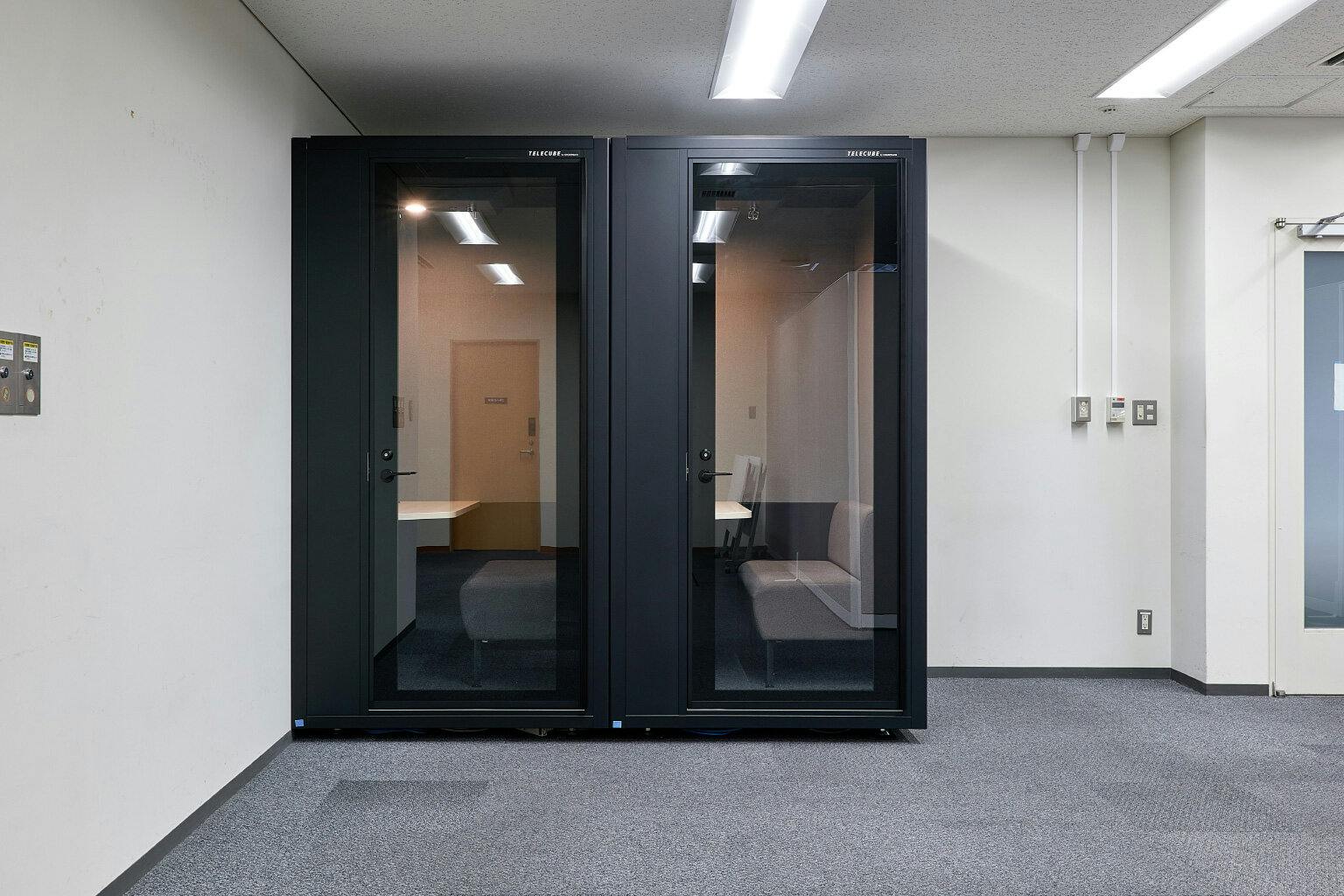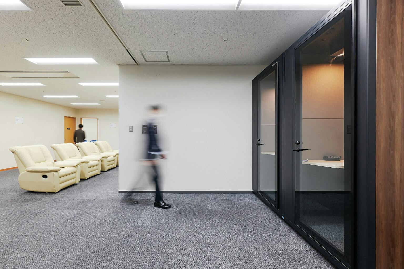 同病院では、新型コロナウイルス感染拡大に伴って増えたWEB会議や学会発表などに対応するため、会議エリアへワークブースを導入しました。