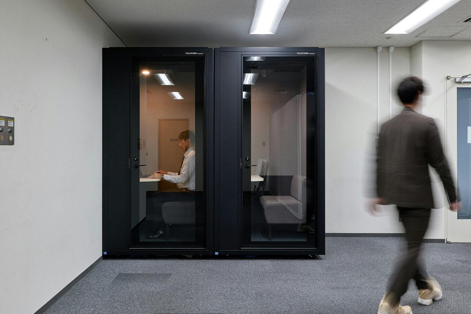 「会議スペースの構想を設計事務所に相談していく中で紹介されたのが『TELECUBE by OKAMURA』です。 会議室の不足と併せて、周囲への音の配慮がきちんとされている個別ブースが欲しい、という要望を叶えるものでした。 」(施設ご担当者)