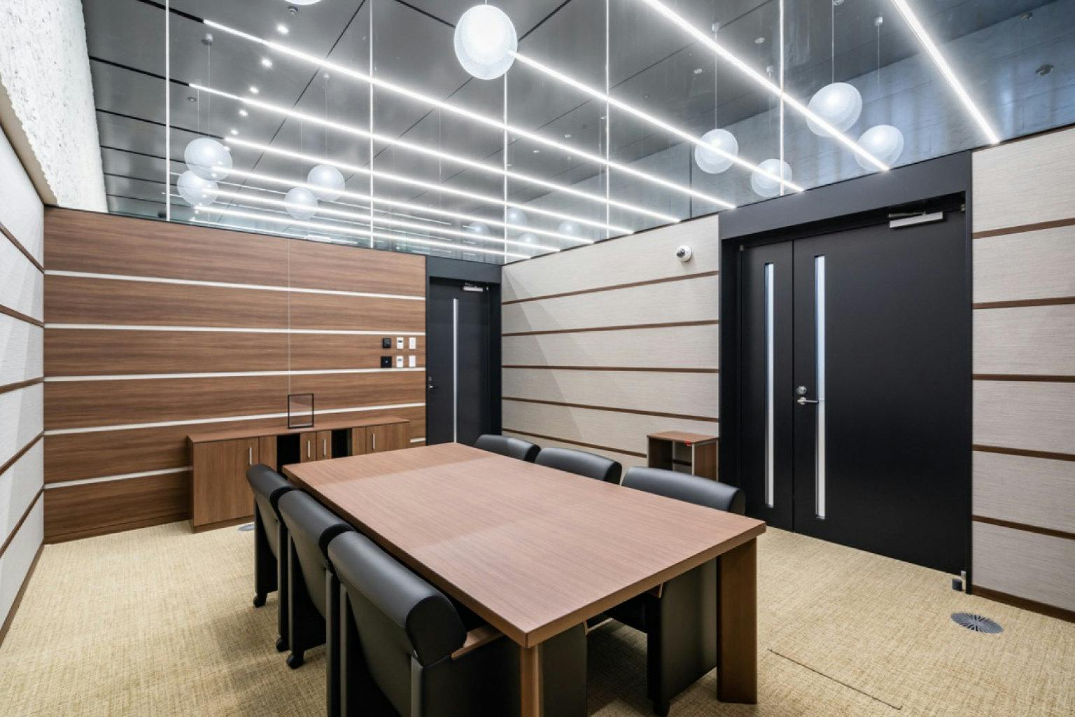一番奥の空間には、大人数用の応接室を設置。 可変性を重視しながらも、部屋の内側は高級感のある内装で仕上げることで、訪れたお客様に特別感を感じさせます。 地域の皆さま、そして古くから銀行を愛してくださるお客様を大切にする武蔵野銀行の想いが伝わってきます。
