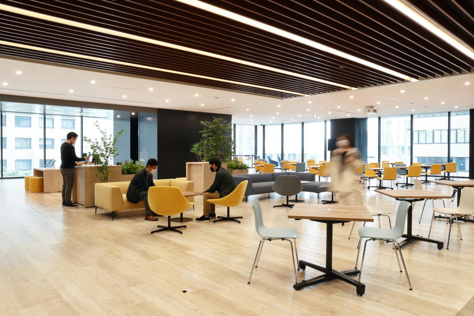 アカデミーゾーンは最大100名ほどの人数を収容でき、情報交換や新たな発見の機会を提供します。 イベント開催時はガラスパーティションでエリアを区切ることで、空間に圧迫感を与えずに機能を分離できます。 この場所から、新たな事業や地域創生のアイデアが生まれ育っていく日も、そう遠くはないでしょう。