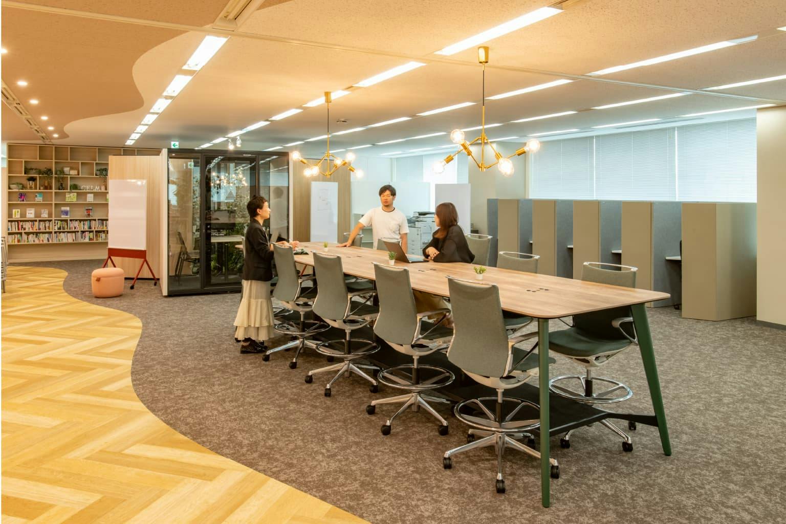 今回は社員に自発的にオフィスに来てもらうために様々なアイデアや仕掛けを採用した事例でした。 テレワークが定着するなかで、社員がオフィスに行きたくなるオフィスにしたいとの声を聞くことも多くなりました。 オンラインでは実現できていないリアルでのコミュニケーションを促し、社員のエンゲージメントを再び向上させることを目指せば、オフィスに求められるものは自然と見えてくるのかもしれません。 フリーアドレス運用への移行と、空間の余白を大事にした“ゆったりとした”オフィスづくり。 色々な仕掛けに基づいて空間を設計することが、行きたくなるオフィスづくりには必要なのではないでしょうか。