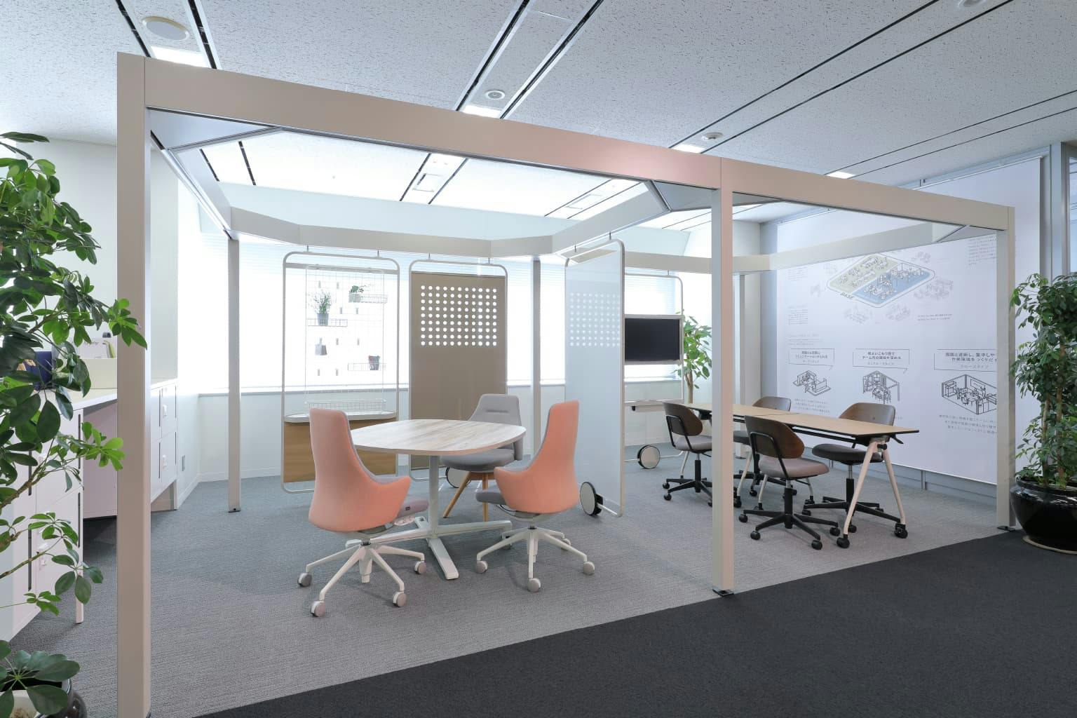 オカムラは自社拠点オフィスを実証実験の場と位置付け“ラボオフィス”と呼んでいます。 MEBAE LABOは、お客様にとって“これからのはたらく”を考えるための最初の一歩をお手伝いさせていただく場となるよう“芽生え(Beginning)”から名付けられました。