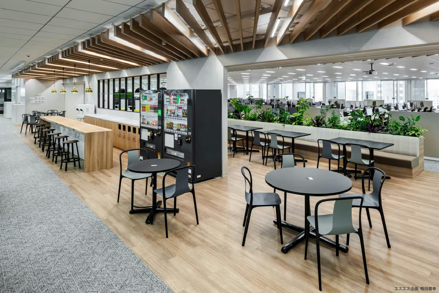 社員が集まる空間が意識的に配置され、偶発的な出会いや会話を生みだす工夫が随所に施されているのです。