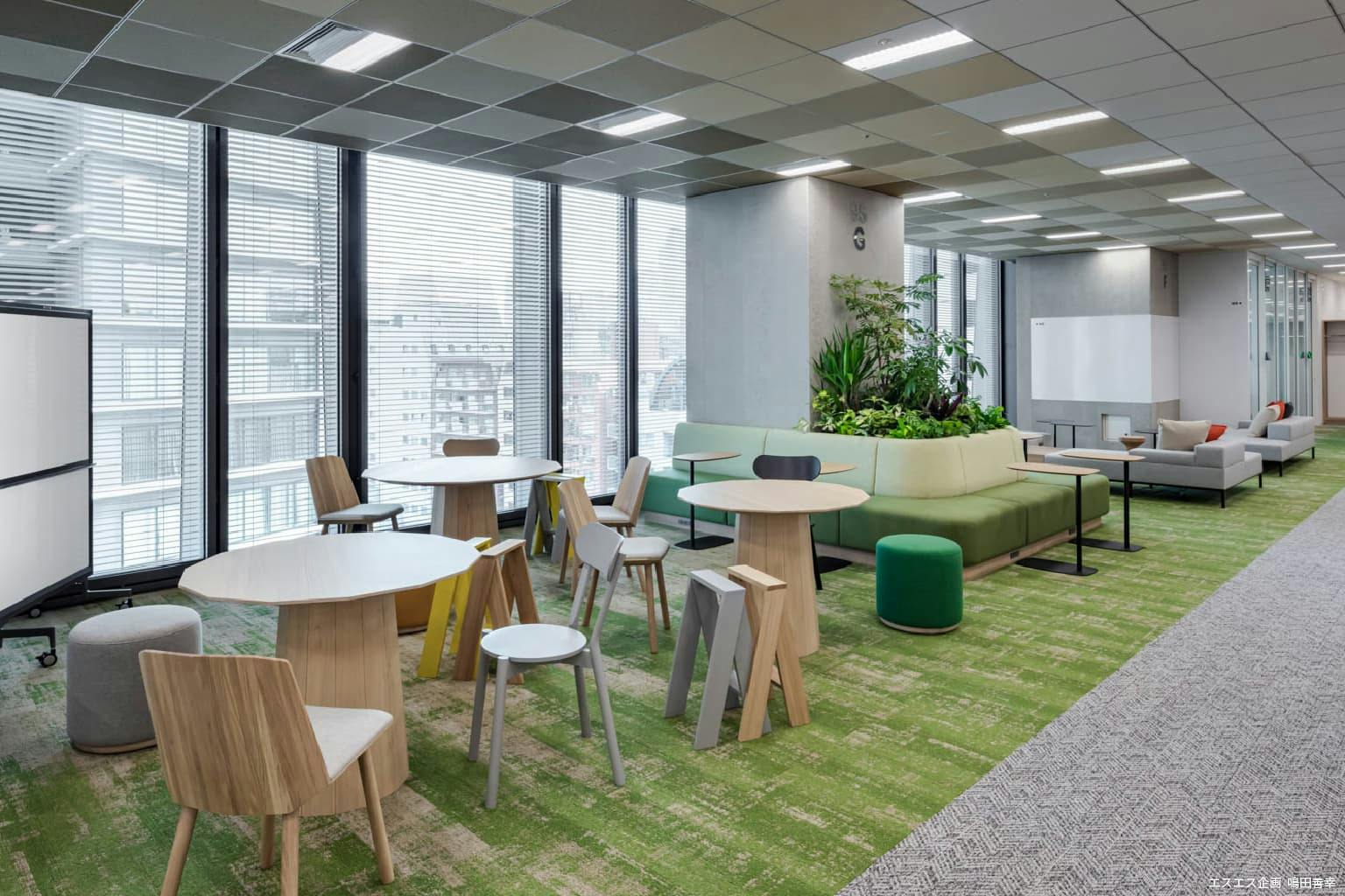 その上で新たなテーマ「共創空間」「場所に縛られない」「健康促進」を融合して、「オフィスに来る価値」を高めたい――。 Face to Faceの対話によってコミュニケーションを加速し、社員の新しい働き方を実現する空間に仕上げたいと考えています。