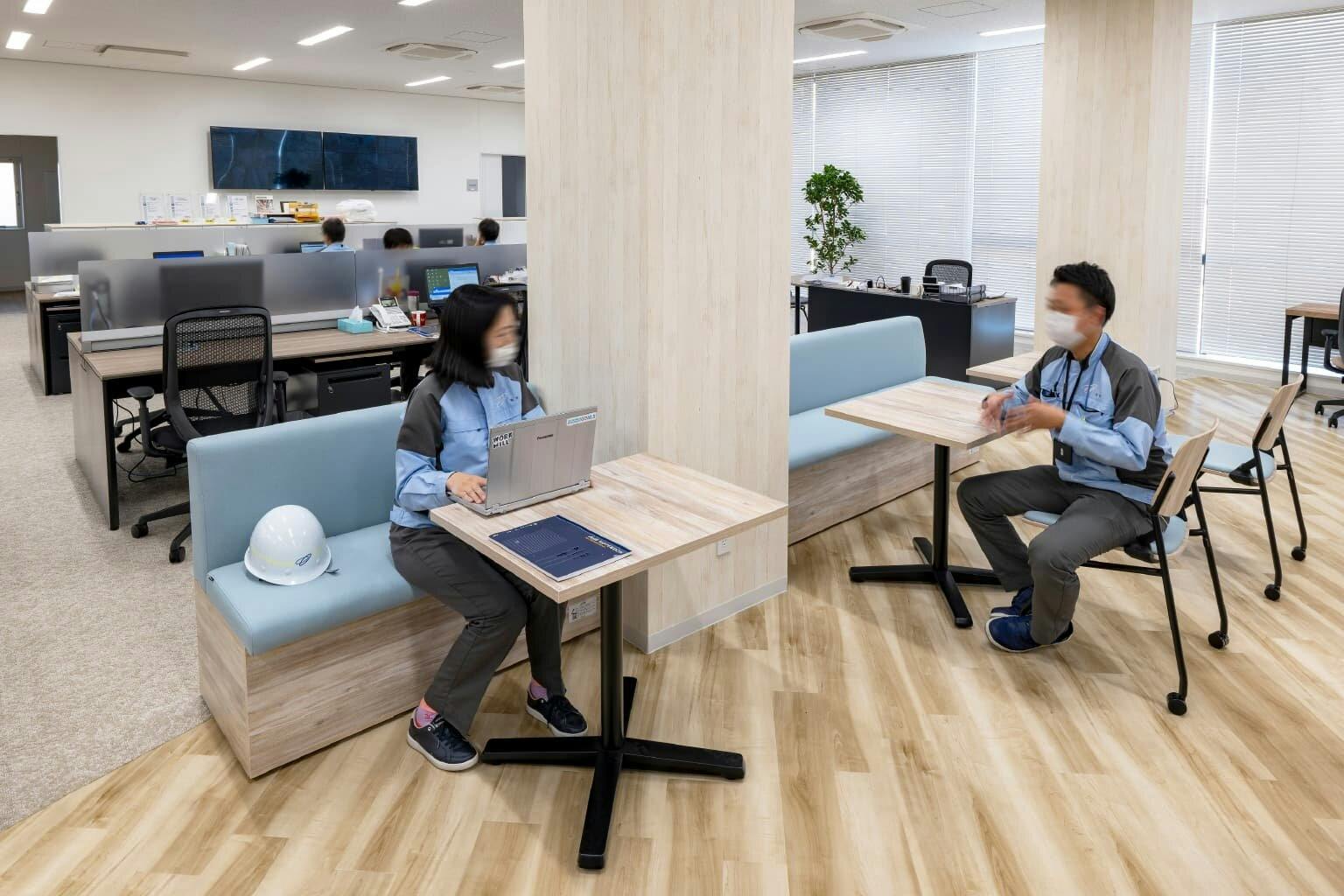 木目を基調とした柔らかなデザインが、老若男女問わず誰にとっても親しみのある空間を演出し、安心して心を解放させられる社員のオアシスとなっています。