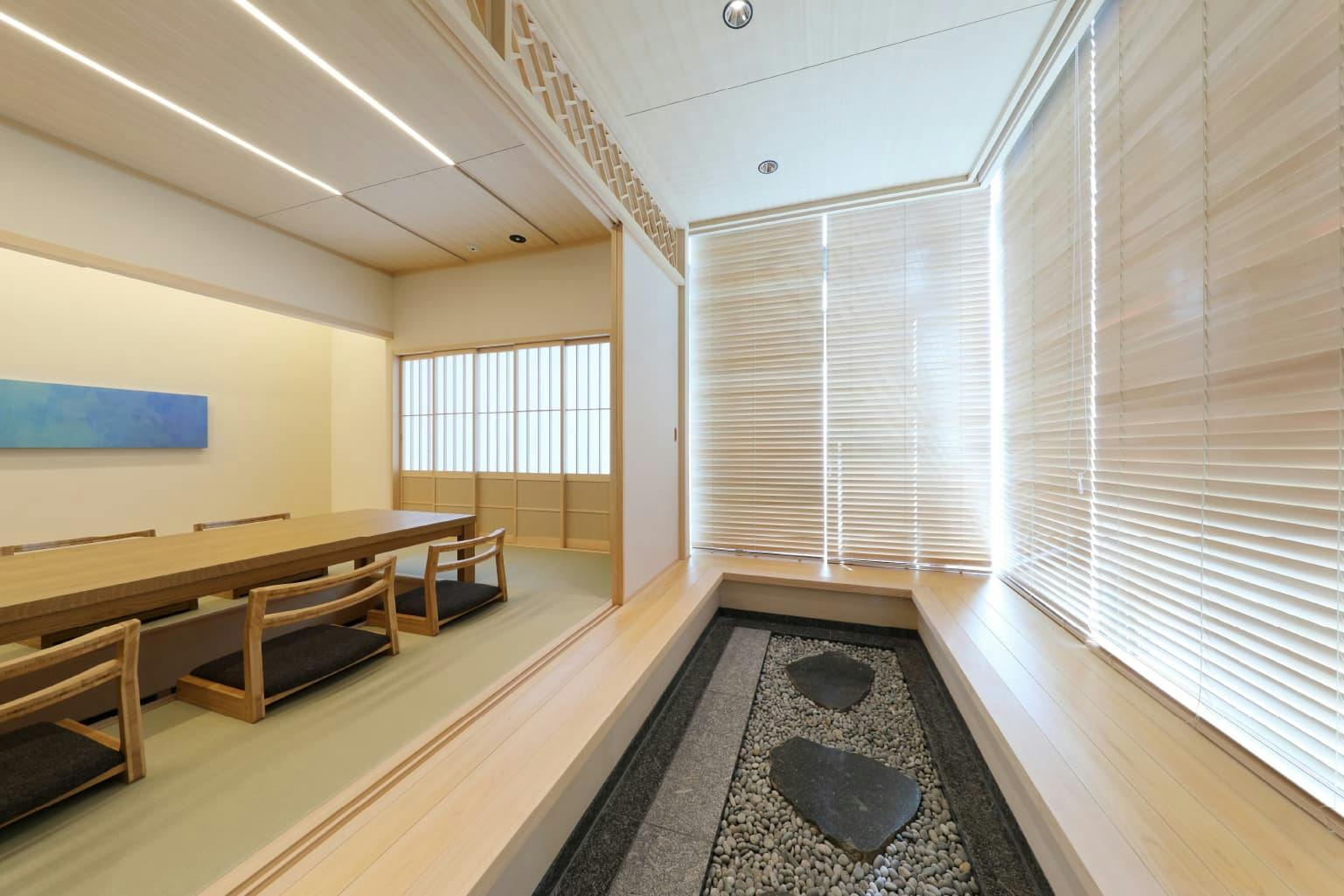 さらに注目したいのは、海外ゲストから高い人気を誇る和室の8人用ゲストルーム。 1階にはゲストルームが複数あり部屋ごとに異なる設えになっていますが、この部屋は彫刻欄間や障子、床の間など和室の美しさが見事に作りこまれています。