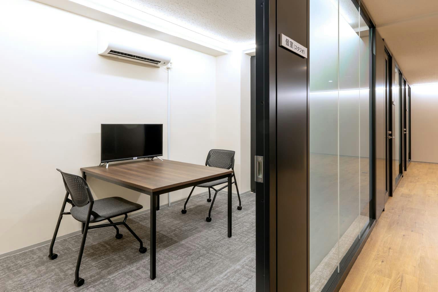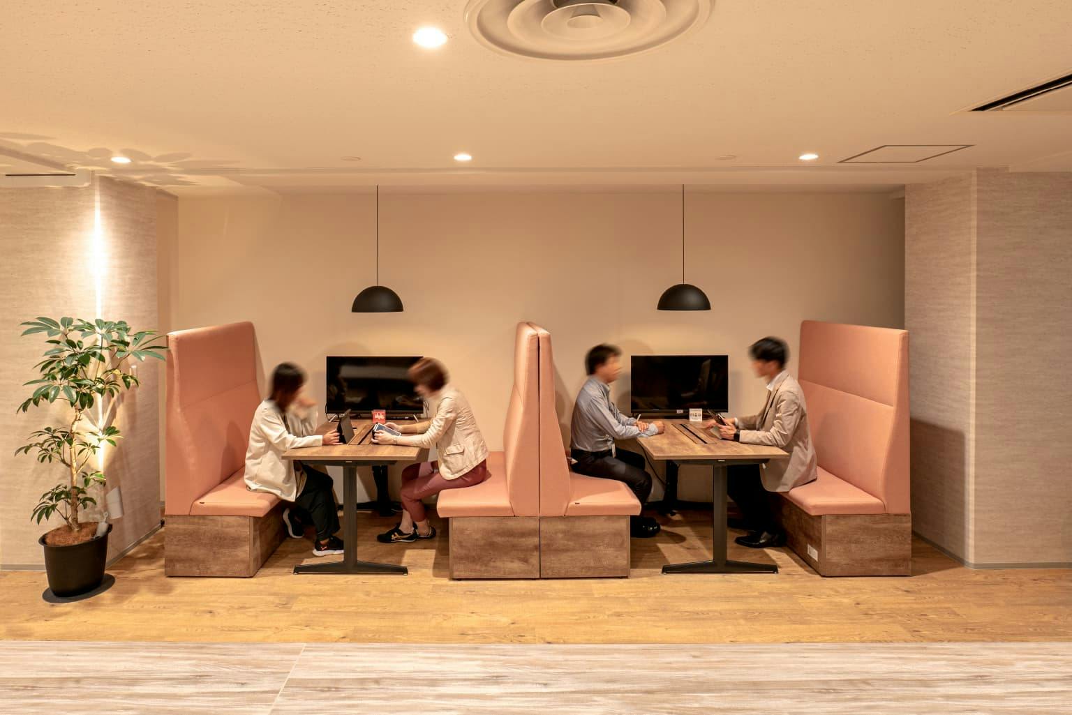 適度に囲われ感のあるソロワーク席は、外部からの刺激を減らし集中力を高めてくれるとっておきの場所。 アイデアに磨きをかけたり深い思考が求められる作業にぴったりです。 ファミレスブースではチームが集まり、テーブルに広げられた資料やディスプレイを見ながら、プロジェクトの進捗状況や課題について報告し合うシーンも。 プライバシーを保つ必要がある1on1や、静かな環境が求められるようなお客様とのオンライン打合せでは、3つ並んだ個室が活用されています。 人数やシチュエーションによって適切な集中空間を使い分けできるようになっています。