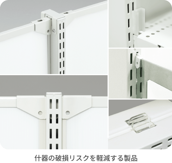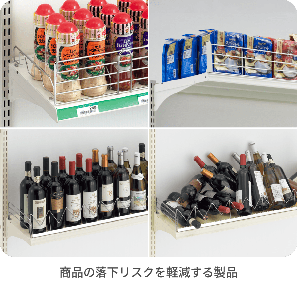お子様から高齢者まで、さまざまな方が来店される店舗は、日々の安全対策が重要です。オカムラでは什器だけでなく、安全への細かい配慮がされたアタッチメントも多数品揃えしています。