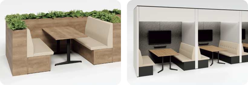 [ブレスタ]- カフェやファミリーレストランのような雰囲気を演出できるソファ。居心地の良い開放的な休憩室が実現できます。