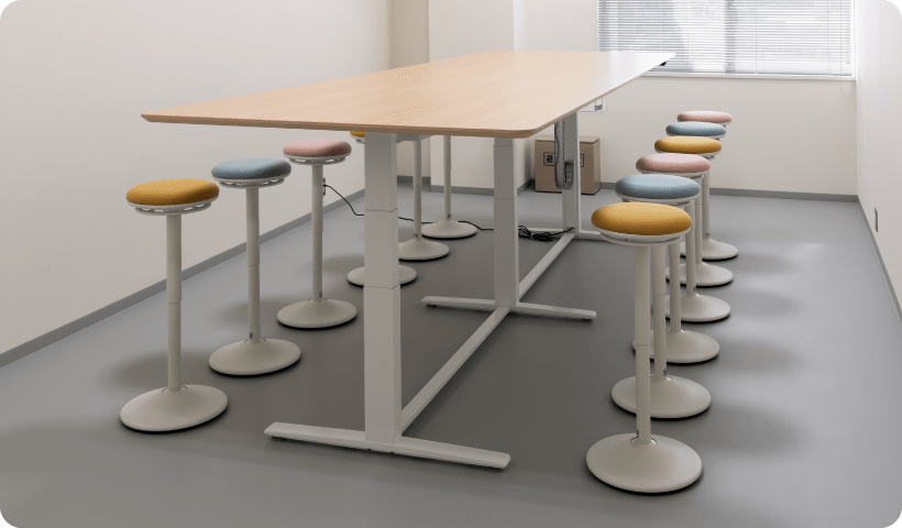 座位と立位の中間的な姿勢で腰掛けることができるチェアなら作業のしやすさを損なうことなく、身体的負担軽減が可能です。