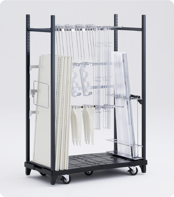 多目的カート[シェルファー]- スマートな見た目で、売場の雰囲気を損なわずに品出しが可能。カートでありながらそのまま商品陳列としても利用できる便利な多目的カートです。